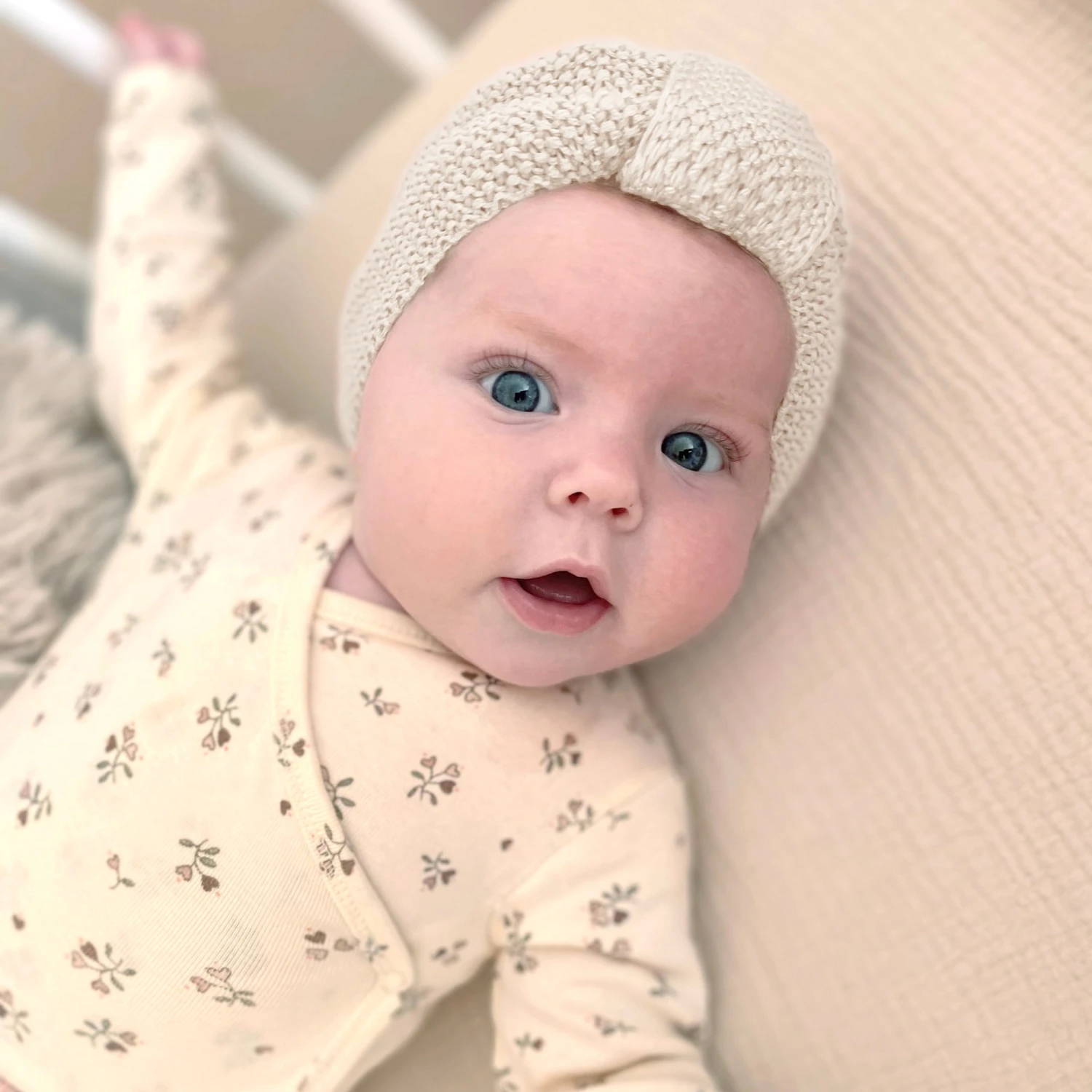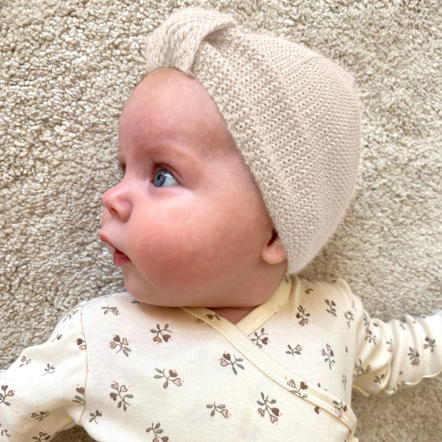 Baby Turban Mütze Strick Natur – 0-3 Monate