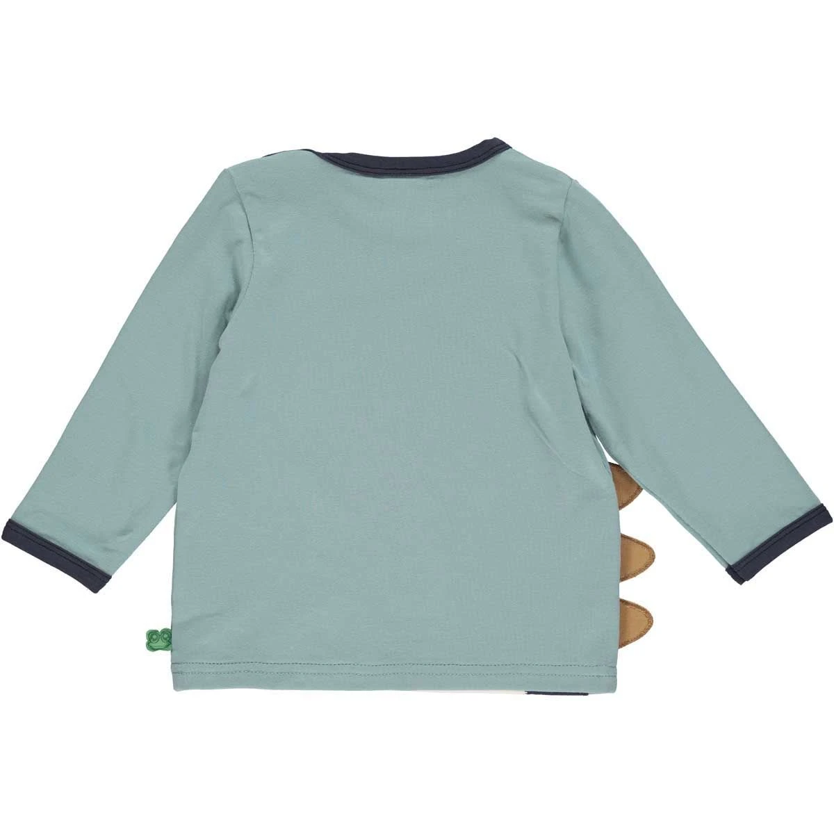 Das Langarmshirt ist aus weicher Bio-Baumwolle hergestellt. Es verfügt über eine hochwertige Dinosaurier Stickerei auf der Vorderseite und hat farblich abgesetzte Rippbündchen. Das Shirt ist gerade geschnitten. Die Druckknöpfe im Nackenbereich erleichtern das das An- und Ausziehen. Das Produkt ist durch Ecocert Greenlife Lic. No. 152033 GOTS Organic zertifiziert. Dies ist aktuell der höchste Standard für Bekleidung. Alle Produktionsprozesse wie Färben, Weben und Nähen werden unter strengsten Vorgaben mit Rücksicht auf die Umwelt durchgeführt. Auch die Arbeitsbedingungen werden während der einzelnen Produktionsschritte streng überwacht. Baumwolle 97%, Elasthan 3%