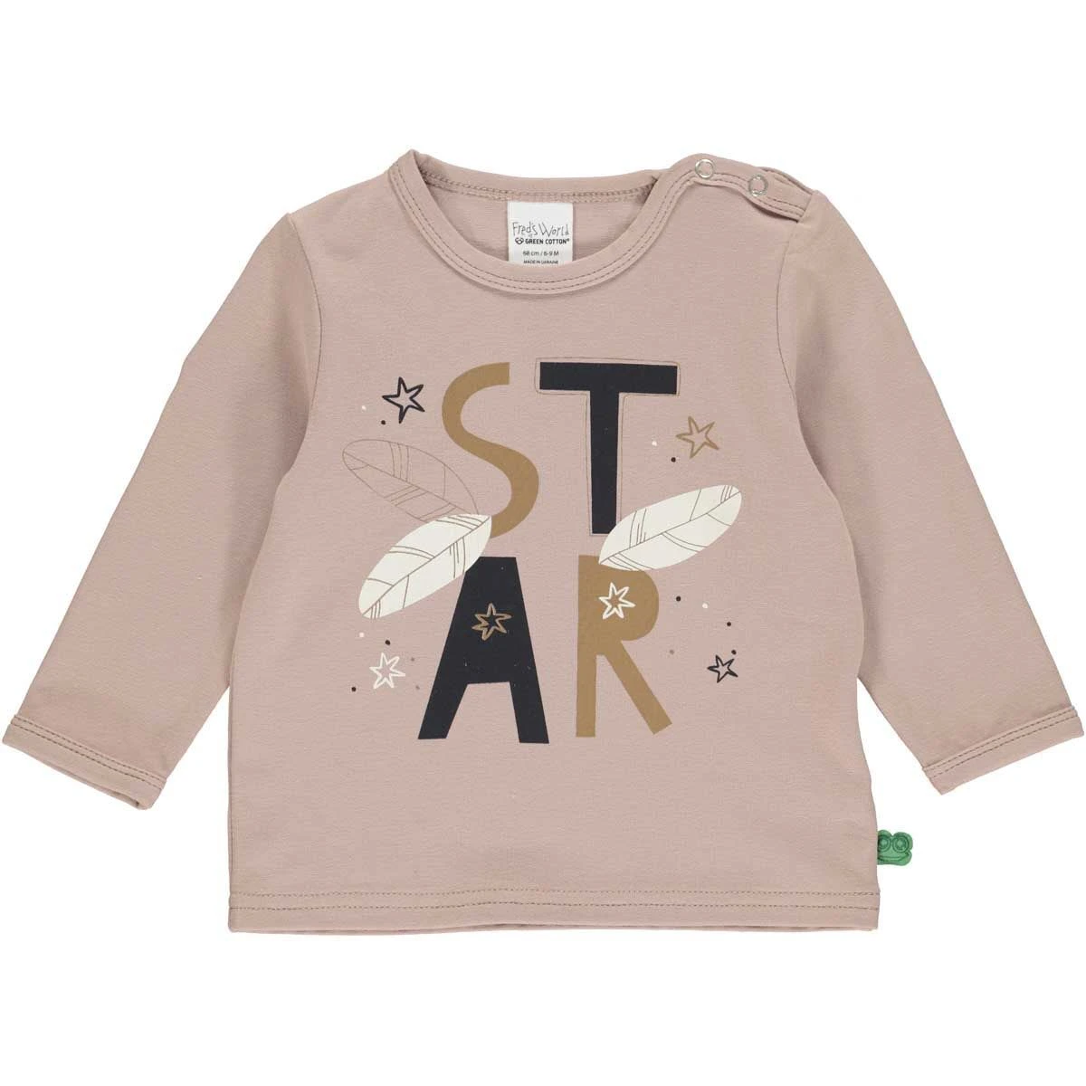 Das Langarmshirt ist aus weicher Bio-Baumwolle hergestellt. Es verfügt über einen verzierten Star-Print auf der Vorderseite. Die Druckknöpfe im Nackenbereich erleichtern das das An- und Ausziehen. Das Produkt ist durch Ecocert Greenlife Lic. No. 152033 GOTS Organic zertifiziert. Dies ist aktuell der höchste Standard für Bekleidung. Alle Produktionsprozesse wie Färben, Weben und Nähen werden unter strengsten Vorgaben mit Rücksicht auf die Umwelt durchgeführt. Auch die Arbeitsbedingungen werden während der einzelnen Produktionsschritte streng überwacht. Baumwolle 97%, Elasthan 3%