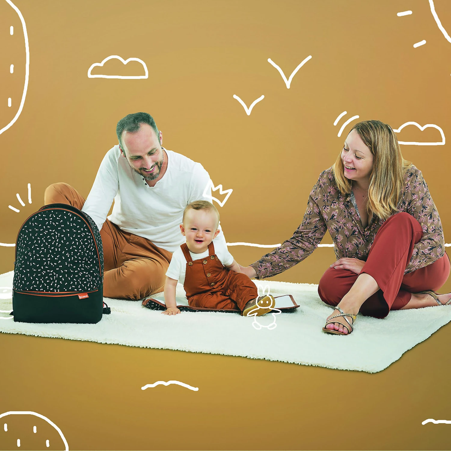 Mit diesem Wickelrucksack können Sie die Ausflüge mit Ihrem Baby sorgenfrei genießen, denn er bietet mit seinen 21 Litern Fassungsvermögen viel Platz für alles, was Sie unterwegs für Ihren Schatz brauchen. Dank der zahlreichen Fächer ist immer alles griffbereit. Damit Sie nicht den ganzen Rucksack ausräumen müssen, wenn Sie etwas Bestimmtes suchen, verfügt er über eine extra große Öffnung. Besonders praktisch ist die integrierte Wickelunterlage.