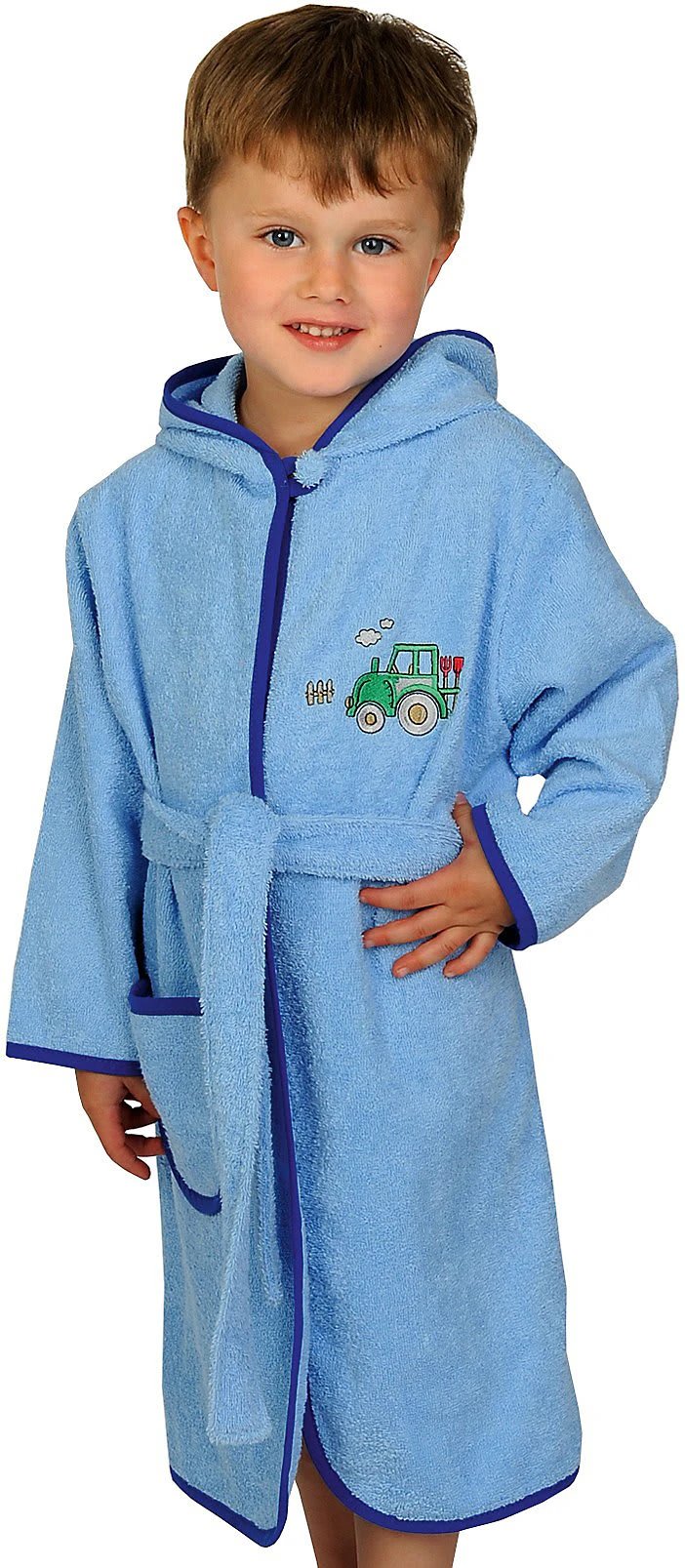 Der qualitativ hochwertige und kuschelig weiche Bademantel von Wörner, mit Kapuze, Knopf am Hals und niedlichem Motiv, lässt sich mit einem Bindegürtel bequem verschließen und sorgt nach dem Badevergnügen für wohlige Wärme. Die besonders flauschige Frotteequalität saugt Feuchtigkeit schnell auf. Eine aufgesetzte Tasche an der rechten Seite bietet Platz für Kleinigkeiten. Dieses Qualitätsprodukt genügt höchsten Ansprüchen.