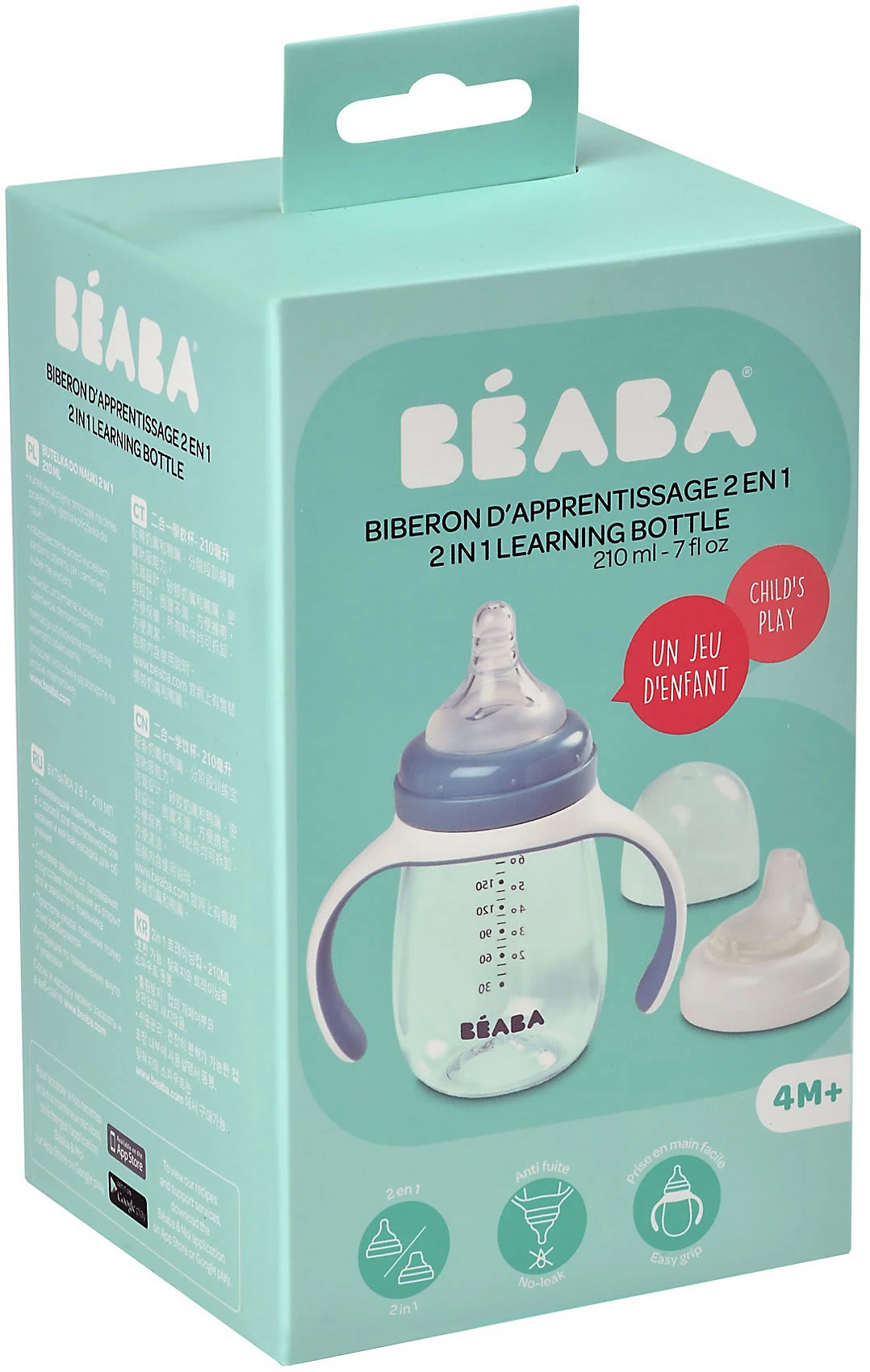 Die Babyflasche kommt mit einem Flaschensauger und einem geschmeidigen Silikonauslauf mit zwei Ringen, um ein leichtes Austauschen zu ermöglichen. Der Lernbecher ist 100% wasserdicht und somit auch ideal für unterwegs. Um auch für kleiBabyhände leicht greifbar zu sein, befinden sich an den Seiten zwei Griffe, welche bei Bedarf auch entfernt werden können. Die Flasche ist fest, transparent, färbt nicht und ist durch die leichte Reinigung auch hygienisch.