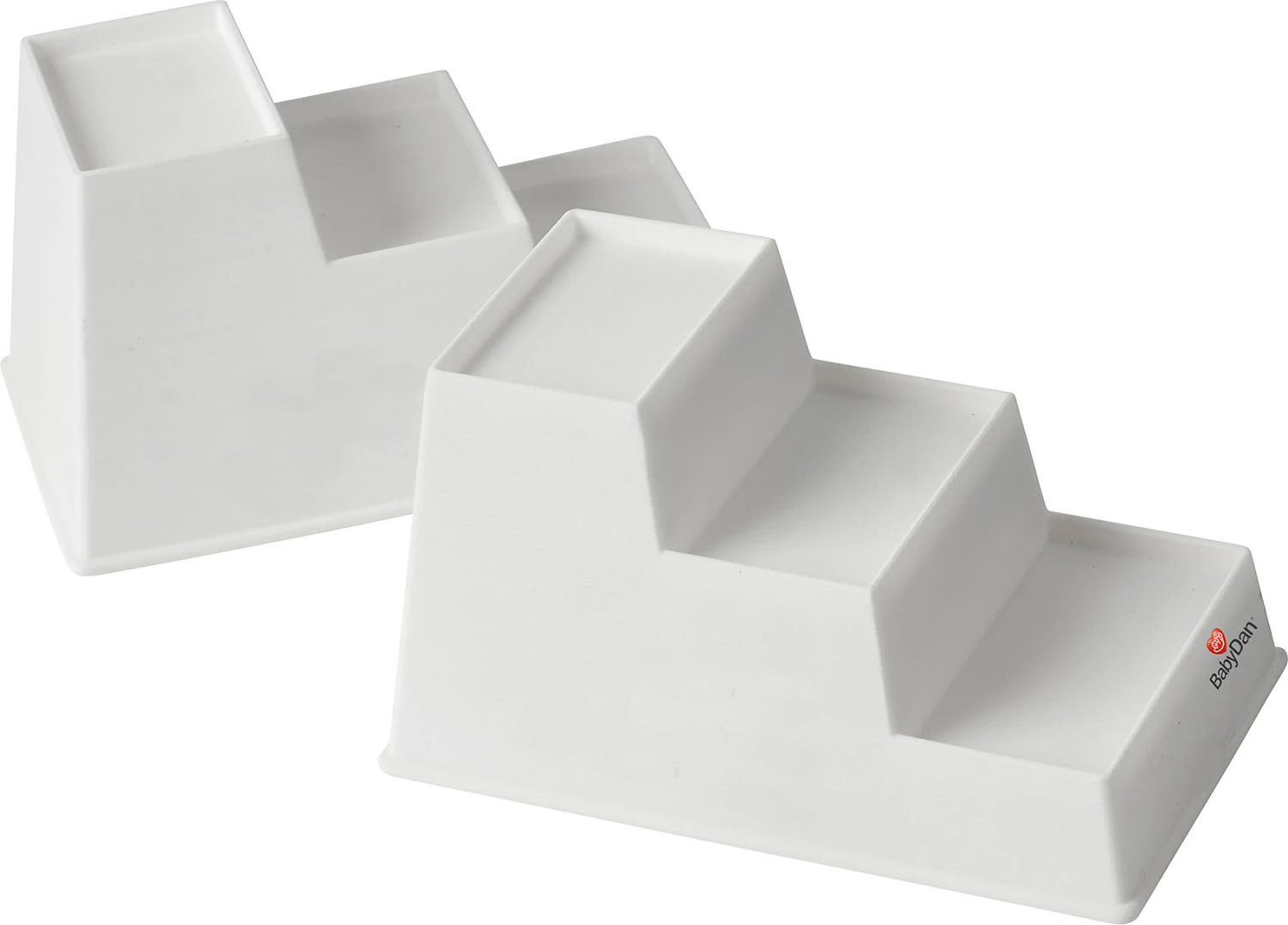 Die Betterhöhung von Baby Dan wird im Zweier-Pack geliefert. So können Sie ein Kinderbett sicher und komfortabel in der Höhe regulieren.