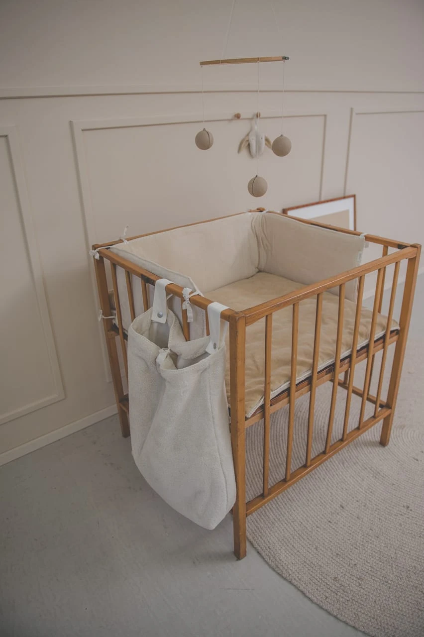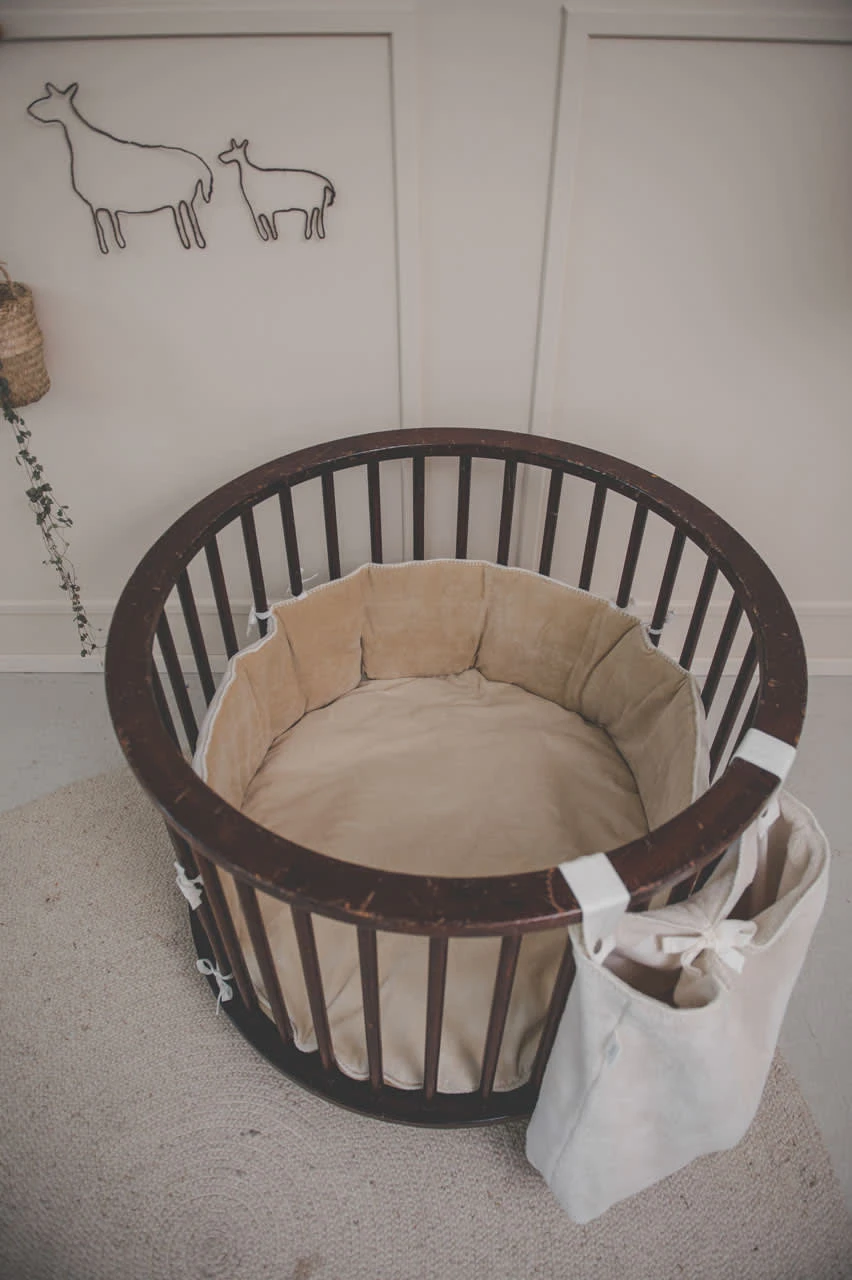 Der Laufstall steht normalerweise in deinem Wohnzimmer, und deshalb ist es schön, wenn du das Zubehör in Farbe und Stoff auf deine Einrichtung abstimmen kannst. Außerdem ist diese Laufstallumrandung auf einer Seite mit Oddi-Stoff und auf der anderen Seite mit weichem Teddy gefertigt. Das Wichtigste an diesem Bettchen für den Laufstall ist natürlich der Schutz vor Zugluft und dem Stoßen an den Gitterstäben des Laufstalls. Gleiches gilt für das Bett Ihres Kindes, in dem es als Bettumrandung fungieren kann und Ihr Kind nicht verletzt werden kann. Du kannst das Nestchen mit den entsprechenden Schnüren einfach an den Gitterstäben des Laufstalls oder Bettchens befestigen. Über die gesamte Breite des Kissens sind mehrere Befestigungsschnüre angebracht, so dass das Kissen gut verteilt und festgeschnürt werden kann.