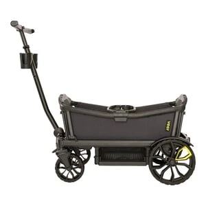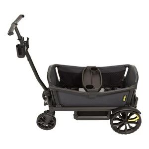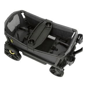 Die Kombination aus Cruiser und Kinderwagen: Der Cruiser von Veer vereint die Funktionalität und Sicherheit eines Kinderwagens mit dem Fahrspaß eines Cruisers. Altersempfehlung: mit Liegeeinsatz (separat erhältlich) ab Geburt; mit Sitzeinsatz (separat erhältlich) ab 6 Monaten; bis ca. 5 Jahre Belastbarkeit: pro Sitz bis 25 kg bzw. 114 cm Körpergröße Verwendung: geländetauglich; kompatibel mit Babyschale (separat erhältlich) Klappmaß: 94(L) x 50,8(B) x 35,6(H) cm Gewicht: 14,7 kg Räder: große, robuste Räder mit Noppen, Komfort-Vorderradaufhängung Lieferumfang: Cruiser mit Gestell, 2 Sitzen und Rädern, 2 Becherhaltern, Esstisch Gestell: Aluminium-Rahmen, einhändig zusammenklappbar, höhenverstellbare Lenkstange, One-Touch-Fußbremse Sitzkabine: wasser-, schmutz- und lichtbeständige Seitenwände, geformte Sitze mit Belüftungslöchern, 3-Punkt-Sicherheitsgurte, 6 innenliegende Netz-Taschen, 4 Fächer für Spielzeug u. ä., Platz für 6 Becherhalter Sicherheit und Komfort Der coole Veer Cruiser überzeugt durch höchste Sicherheitsansprüche. Die beiden vorgeformten Sitze sind mit Belüftungslöchern und 3-Punkt-Sicherheitsgurten ausgestattet, damit die Kinder auch bei einer Fahrt im Gelände immer sicher und bequem sitzen. Damit schon die Kleinsten sicher mitfahren können, kann der Liegeeinsatz oder Deine Babyschale mittels separat erhältlichen Adaptern in der Sitzkabine befestigt werden. Für den Komfort beim Ausflug ist ebenfalls gesorgt: In der Sitzkabine finden in den insgesamt zehn Fächern alle nötigen Utensilien Platz. Außerdem können bis zu sechs Becherhalter sicher befestigt werden. Damit auch unterwegs das gemeinsame Essen nicht zu kurz kommt, ist der der Cruiser mit einem Esstisch ausgestattet. Gestell und Fahrwerk Das Gestell, das jedes Terrain meistert, besteht aus einem einzigen Aluminium-Rahmen mit Roboter-Schweißnähten. Die großen, robusten Räder mit Noppen halten jedem Untergrund stand. Die Vorderräder sind an einer Komfort-Radaufhängung befestigt. Der Schmutzfänger an den Hinterrädern sorgt dafür, dass die Sitzkabine sauber bleibt. Und sollte der Ausflug doch mal durch Pfützen und ähnliches führen, können die wasser-, schmutz- und lichtbeständigen Stoffseitenwände einfach mit Wasser abgespritzt werden. Der Veer Cruiser kann geschoben, gezogen oder seitlich geschoben werden. Die höhenverstellbare Lenkstange ist individuell einstellbar und bietet einen Griff mit angenehmer Haptik. Dank der One-Touch-Fußbremse steht der Cruiser immer sicher. Kompakt: Damit der Cruiser leicht verstaut werden kann, ist er mit einer Hand zusammenklappbar. Lieferumfang Im Lieferumfang ist das Gestell samt vorgeformten Sitzen und Rädern enthalten. Zusätzlich sind zwei Becherhalter und ein Esstisch inbegriffen.