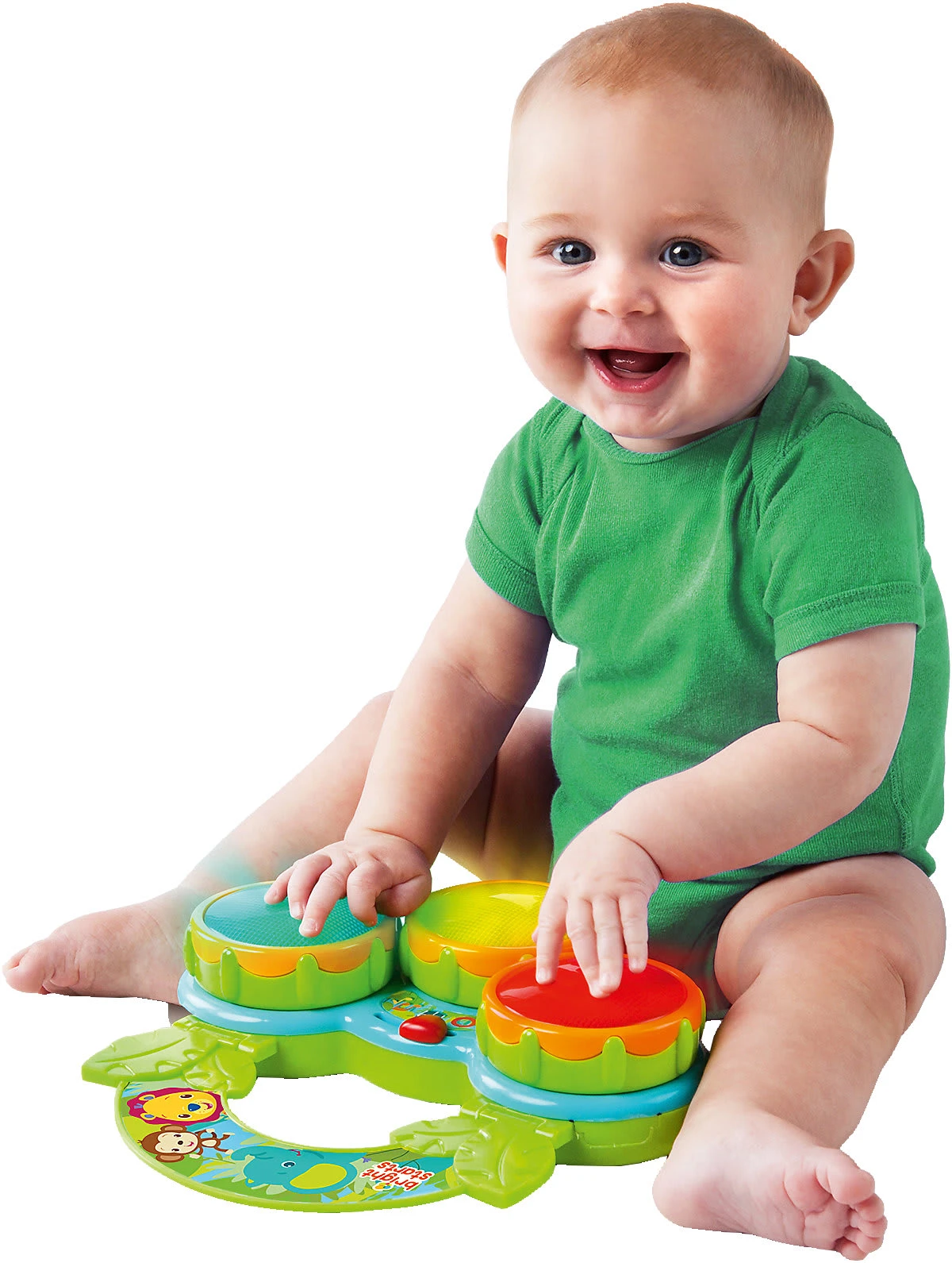 Lustige Geräusche, aufleuchtende Trommeln und fröhliche Musik inspirieren das Baby dazu, wie ein kleiner Weltmeister zu trommeln!