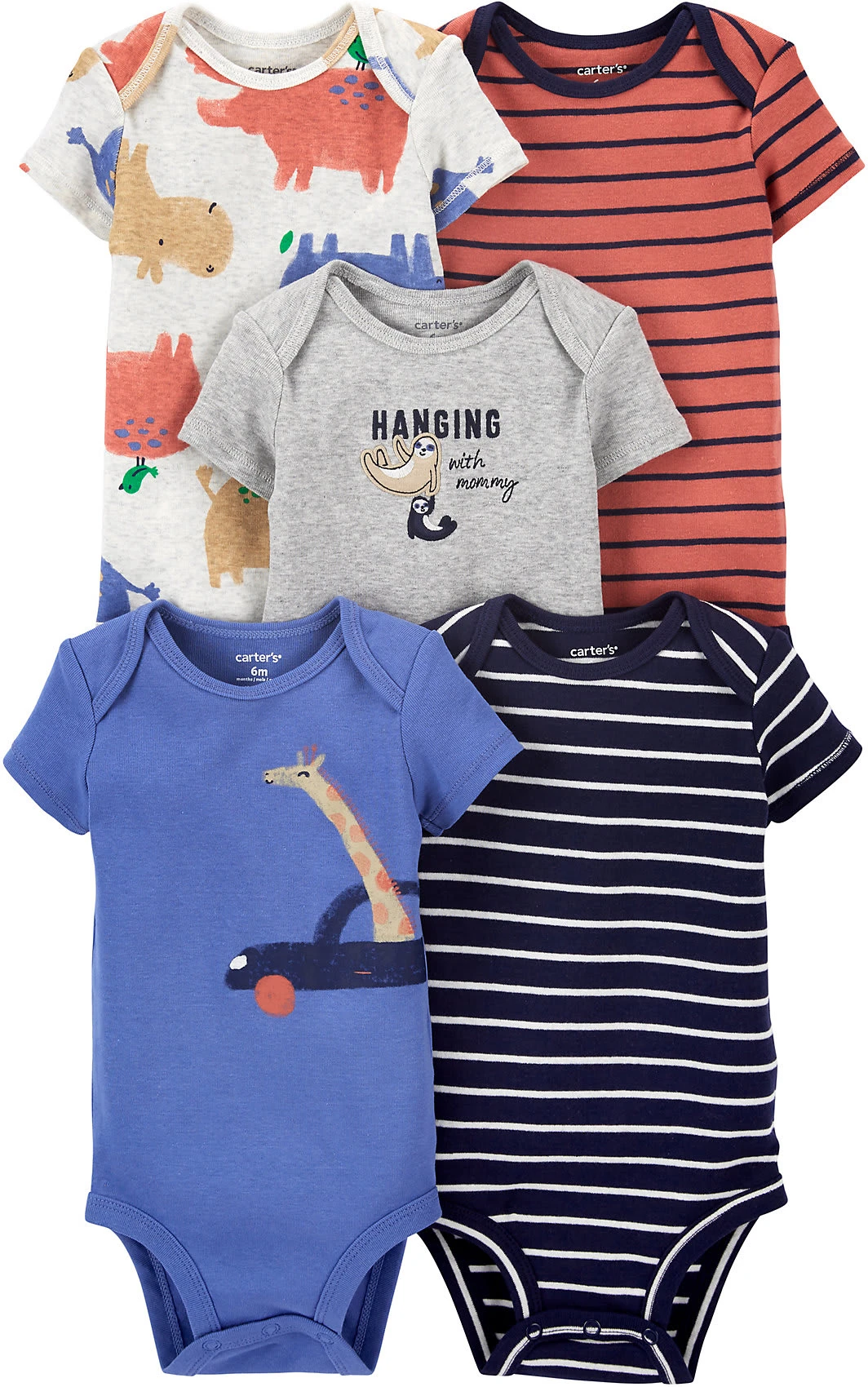 Passend im Alltag zeigt sich dieser Fünferpack aus dem Hause carter`s. Der Einsatz natürlicher Baumwolle sorgt für einen sehr wohligen Komfort.