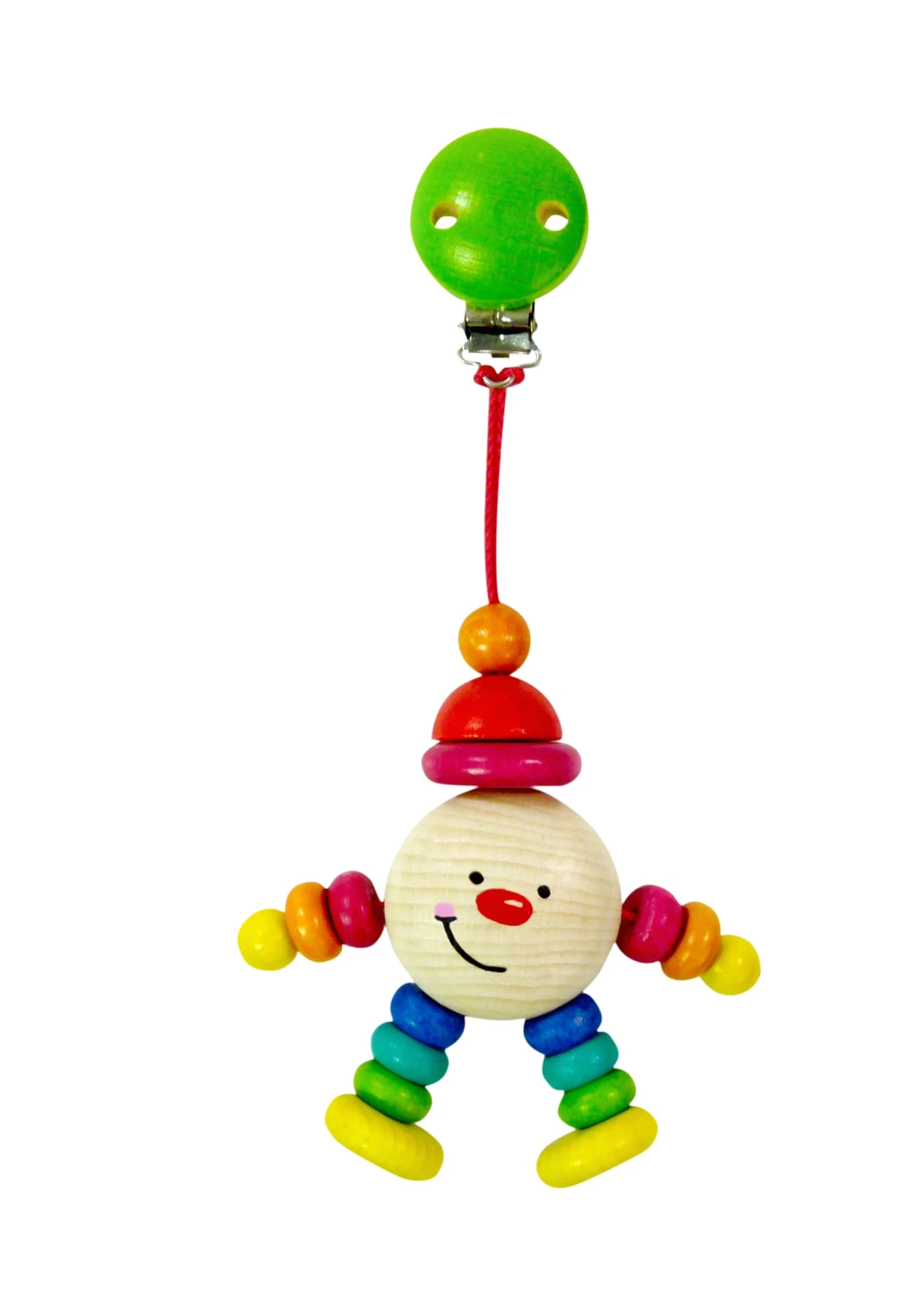 Achtung! Bitte achten Sie darauf, dass der Anhänger stets am Kleidungsstück oder Kinderwagen befestigt ist.Kontrollieren Sie regelmäßig das Spielzeug und entfernen Sie es sofort bei Mängel oder Beschädigung. Verlängern Sie niemals das Spielzeug und befestigen Sie den Anhänger niemals an Schnüren, Bändern, Trägern oder losen Teilen der Kleidung. Ihr Kind kann sich damit erdrosseln. Benutzung unter unmittelbarer Aufsicht von Erwachsenen.
