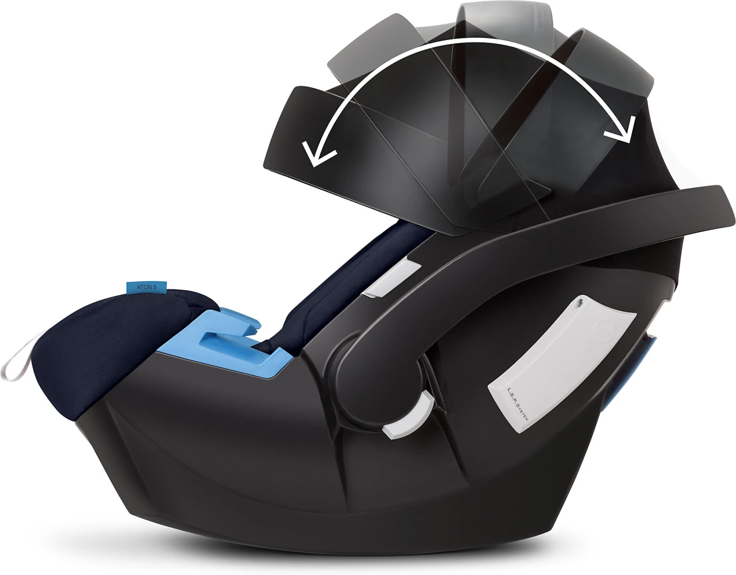 Die Babyschale Aton 5 von Cybex verfügt über eine integrierte Sitzhöhen-Verstellung für einen möglichst flachen Liegewinkel zwischen Kopf, Hals und Brustkorb. Das verhindert das Nach-Vorne-Kippen des Kopfes und reduziert die plötzliche Atemnot gerade bei Neu- und Frühgeborenen.