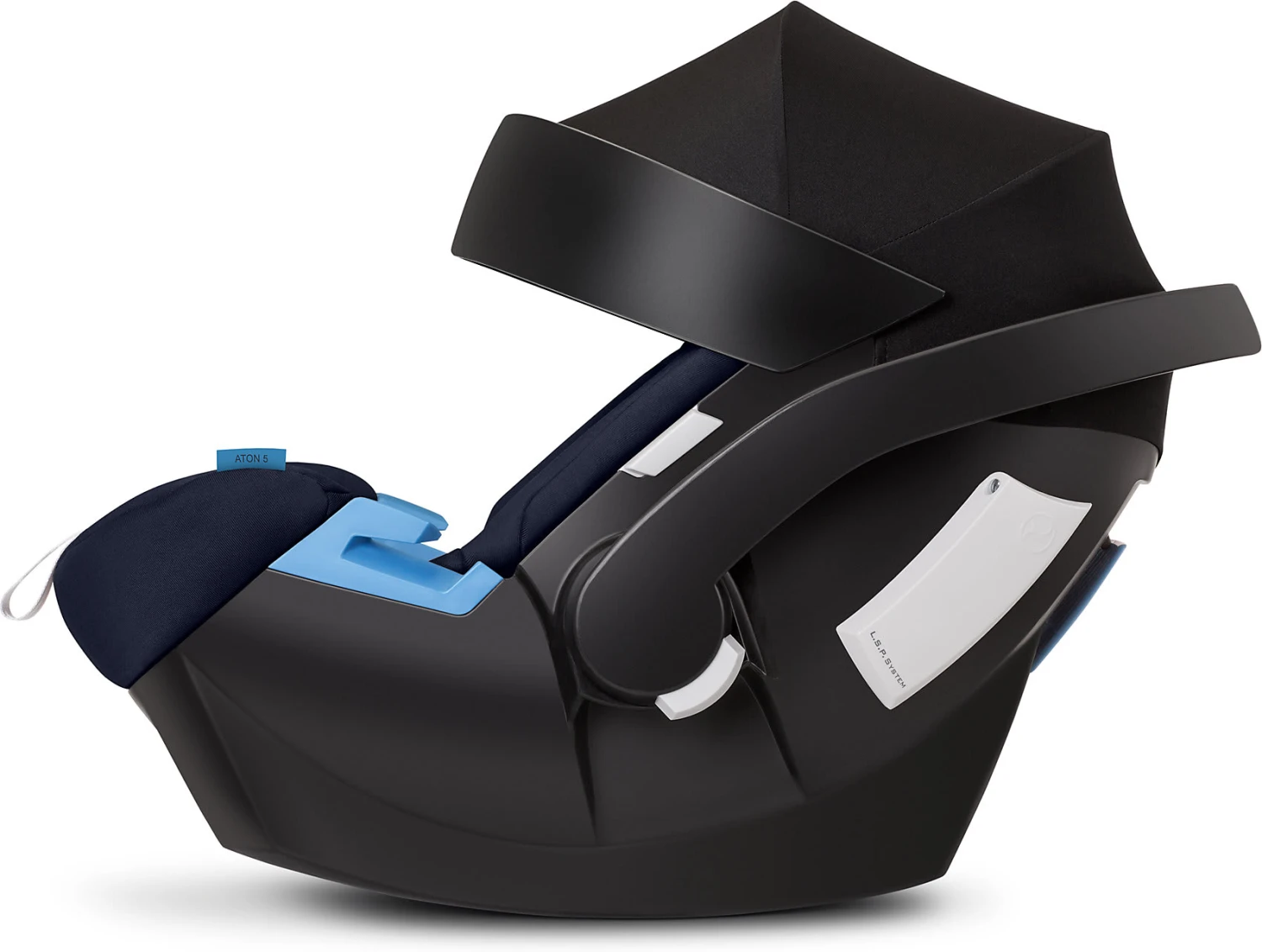 Mit den separat erhältlichen Adaptern lässt sich die Babyschale Aton 5 auf einen Cybex Buggy befestigen und kann so als Travelsystem genutzt werden.