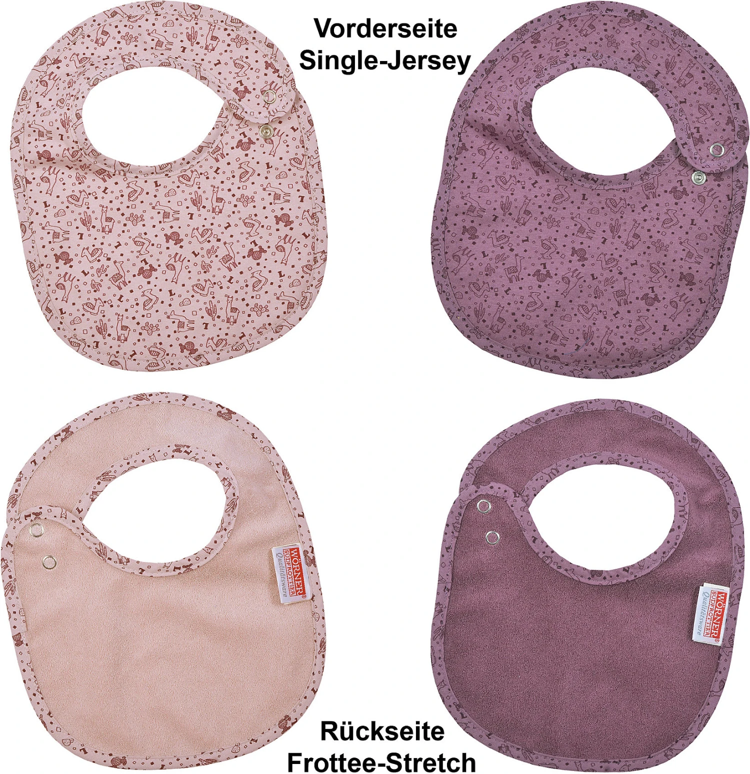 Diese wasserundurchlässigen, zweilagigen Lätzchen von Wörner sind ein Must-have! 2er-Pack Lätzchen von Wörner 22 x 29 cm Vorderseite mit Allover-Print, Rückseite einfarbig 2-fach verstellbarer Druckknopfverschluss wasserundurchlässig – innen PU-beschichtet (PVC-frei, phtalatfrei) Vorderseite aus Single Jersey (reine Baumwolle), Rückseite aus Frottee-Stretch (reine Baumwolle) Hochwertig: Die Lätzchen sind zweilagig gefertigt. Die Vorderseite besteht aus Single Jersey, die Rückseite aus weichem Frottee-Stretch, der angenehm auf der Haut liegt. Wasserundurchlässig: Innen haben die Lätzchen eine PU-Beschichtung. So dringt keine Feuchtigkeit durch und die Kleidung darunter bleibt trocken und sauber. Für einfaches Umlegen sind die Lätzchen mit einem Druckknopfverschluss ausgestattet. Er ist sogar zweifach verstellbar, sodass die Lätzchen immer perfekt passen. Hingucker: Die Vorderseite ist allover mit niedlichen Tiermotiven bedruckt.