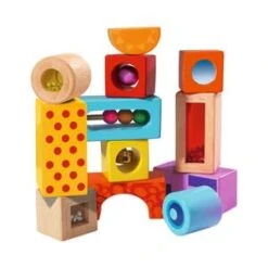 Lauschen, Greifen und Kombinieren: Mit den Color Klangbausteinen von Eichhorn wird spielerisch die akustische Wahrnehmung, Motorik und die Hand-Auge-Koordination gefördert. 12 Soundbausteine in verschiedenen Farben und Formen Bausteine mit Glöckchen und Kugeln mit unterschiedlichen Soundeffekten bunt bedrucktes Birkenholz Die 12 Soundbausteine von Eichhorn gibt es in verschiedenen Farben und Formen. Sie lassen sich stapeln, aneinanderreihen und erzeugen dabei unterschiedliche Geräusche. Die Steine sind jeweils mit Kügelchen, einem Glöckchen oder anderen Elementen bestückt. Die Kinder werden so animiert, spielerisch gefördert und gezielt geschult.