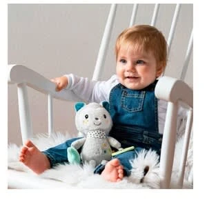 Lustiger Spielspaß ob Zuhause oder unterwegs: Mit dem praktischen Ring kann das Activity-Spieltier Katze aus der Aiko & Yuki Kollektion von Fehn an Kinderwagen, Babyschale oder Bett befestigt werden. Activity-Katze Aiko & Yuki, 28cm mit Spiegel, Soft-Beißer, Greifring, Ringrassel und Glöckchen ab Geburt Obermaterial: Plüsch, Softvelours, Stoff – für Handwäsche geeignet Die verschiedenen Spielmöglichkeiten sorgen überall für gute Laune: Glöckchen, Beißer, Rassel und Greifring regen die Neugier an und fördern Babys Greif- und Tastsinn sowie die Feinmotorik, der kleine Spiegel trägt zur positiven Entwicklung der Ich-Wahrnehmung bei – damit wird die kleine Katze zum besten Freund des Babys. Motorikspielzeug zum Aufhängen mit spannenden Anhängern zum Greifen und Geräusche erzeugen – ein perfekter Begleiter für Babys und Kleinkinder ab Geburt.