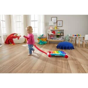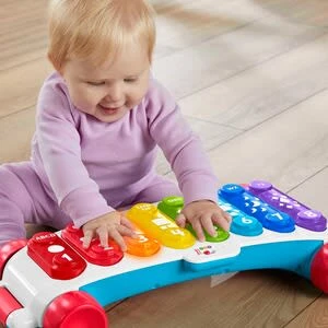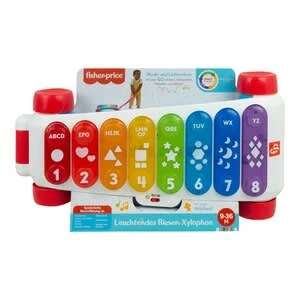 Das Musikspielzeug Leuchtendes Riesen-Xylophon von Fisher-Price ist ein klassisches Lernspielzeug für Kinder. Zahlreiche bunte Tasten ermuntern das Kind, sich als Komponist zu betätigen. Begleitet werden Lieder und Geräusche von einer bunten Light Show. Musikspielzeug Leuchtendes Riesen-Xylophon von Fisher-Price 2 Spielmöglichkeiten, 3 Smart-Stages-Lernstufen, 8 farbenfrohe, aufleuchtende Tasten (mit über 60 Liedern, Geräuschen und Sätzen), inklusive Batterien (3 x 1,5 V AA) Soundeffekte, Musik, Lichteffekte Griff einklappbar Kunststoff ab 9 Monaten bis 3 Jahre geeignet Das interaktive Spielzeug-Xylophon verfügt über acht mehrfarbige, aufleuchtende Tasten. Sie aktivieren über 60 Lieder, Geräusche und Sätze. Das Kind kann sich so kreativ betätigen und schult spielerisch seine motorischen Fähigkeiten. Auch das Erkennen von Farben wird verbessert. Faszinierende Lichteffekte sorgen für ein noch intensiveres Spielerlebnis. Mit den Smart-Stages-Lernstufen gestaltest Du das Spiel entsprechend der Entwicklung Deines Kindes: Bei den Lernliedern und -sätzen sind drei Stufen verfügbar, die immer mehr Kenntnisse über das ABC, den Gebrauch von Zahlen, Formen und mehr vermitteln. Der robuste Griff auf der Unterseite lässt sich einklappen. So können kleine Musikanten sitzen und spielen oder bei ausgezogenem Griff stehen und das Instrument hinter sich herziehen. Das Spielzeug ist für Kinder ab neun Monaten bis zu drei Jahren geeignet.