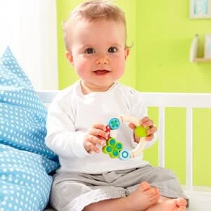 Der aus Buchenholz gefertigte Greifling Glücksbringer von HABA lädt zum Greifen, Entdecken und Spielen ein. Das kleine Glöckchen macht angenehme Geräusche, die Baby immer wieder hinhören lassen. Greifling mit bunten Holzelementen und Glöckchen 10 cm Durchmesser aus Buchenholz ab 10 Monaten Mit seinen klassischen Motiven wie Fliegenpilz und vierblättrigem Kleeblatt bringt der Greifling von HABA dem Nachwuchs Glück. Das Spielgerät wird Baby immer wieder zum Anfassen, Greifen, Drehen und Bewegen anregen. Die lustigen Geräusche des kleinen Glöckchens laden zum amüsierten Hinhören ein. Der sympathische Greifling Glücksbringer von HABA aus robustem Buchenholz eignet sich bereits am dem 10.Lebensmonat.