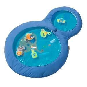 Mit der Wasser-Spielmatte von HABA geht der kleine Schatz auf Entdeckungstour in die fröhliche Unterwasserwelt. Das bringt Spaß und stärkt gleichzeitig die Motorik in der Bauchlage. Wasser-Spielmatte ab 6 Monate geeignet 60(L) x 40(B) x 2(H) cm Kunststoff, Polyester Das Baby erhält durch die 2 großen Luken einen Blick in die kleine Unterwasserwelt. Die kleinen Unterwasseer-Tiere lassen sich leicht bewegen. Die weiche, mit Wasser gefüllte Unterlage lässt das Kind angenehm weich auf der Matte liegen und unterstützt so die Entwicklung der Motorik in der Bauchalge. Ein Sicherheitsventil sorgt dafür, dass kein Wasser austritt. Baby wird den Tauchgang lieben und sich über all das freuen, was es zu entdecken gibt.