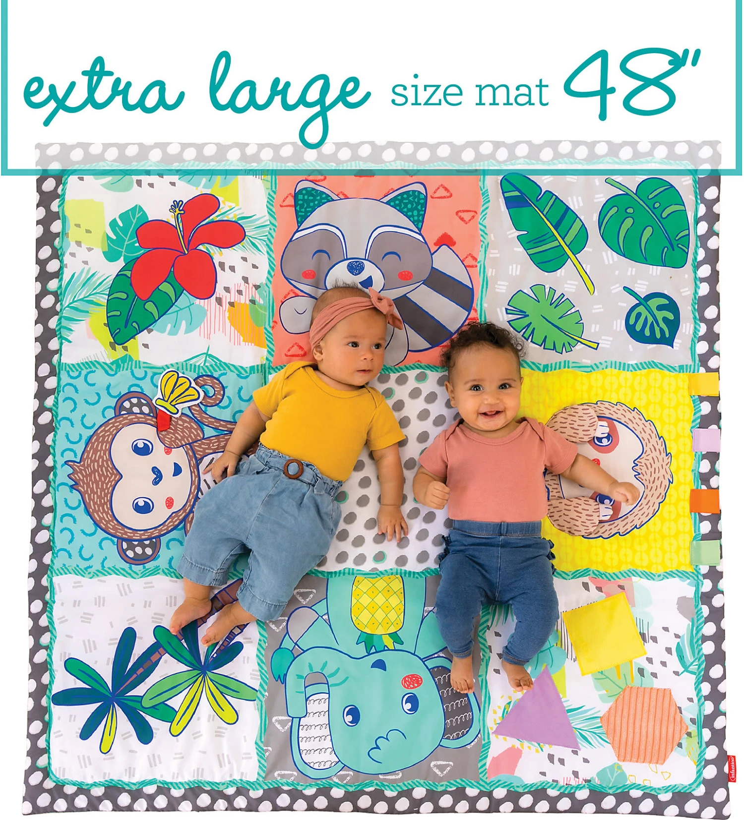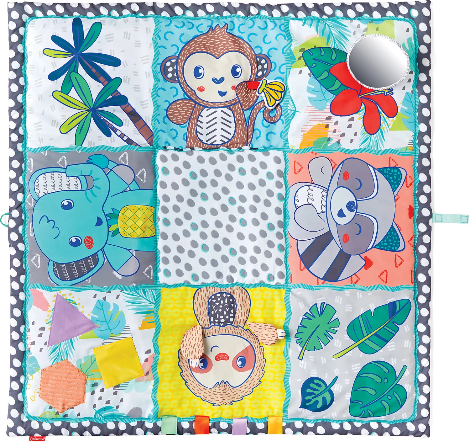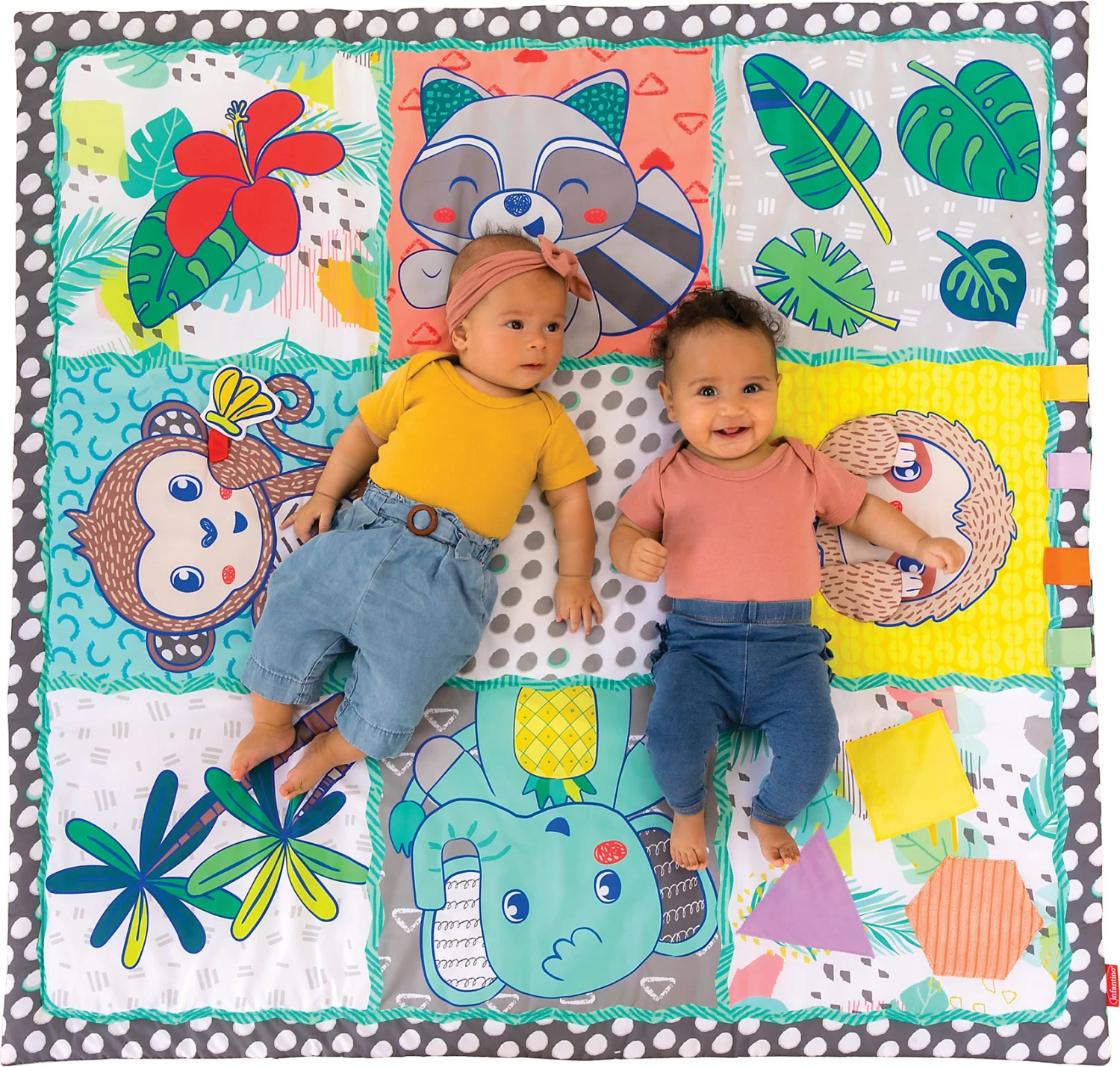 Diese Sensorik-Spielmatte aus dem Hause Infantino sorgt mit der großen Fläche und den vielen unterschiedlichen Funktionen für tollen Spiel- und Erkundungsspaß! Dabei regen die strukturierten Formen, die knisternden Geräusche, bunte Bänder und der Selfie-Spiegel zu interaktivem, sensorischem Spielen an. Gleichzeitig werden die Grob- und Feinmotorik des Kindes gefördert.