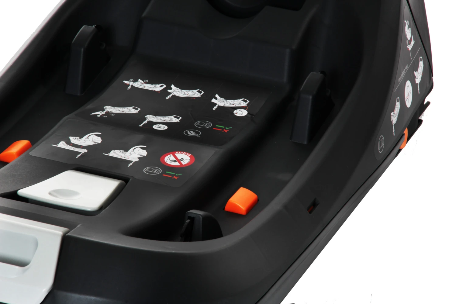 • Die Basis können Sie mit den ausfahrbaren Isofix-Konnektoren ganz leicht in Ihrem Auto montieren und wieder lösen. Die Babyschale wird einfach darauf gesteckt.