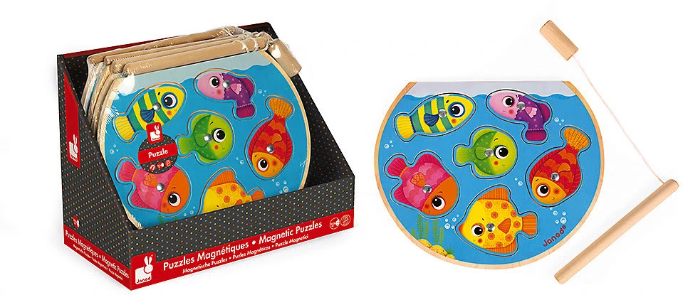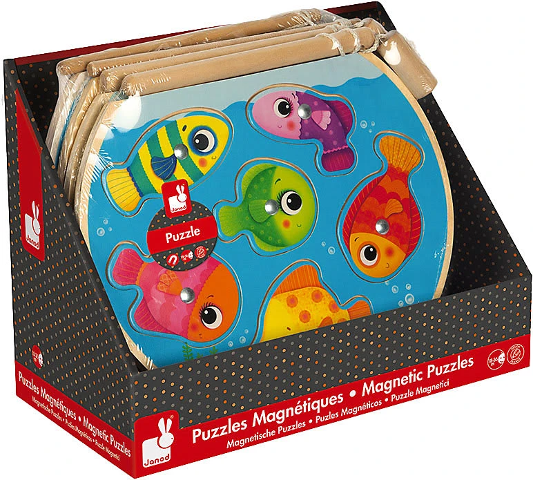 Janod J07088 Speedy Fish Puzzle MagnetAngelpuzzle Fisch, mehrfarbig