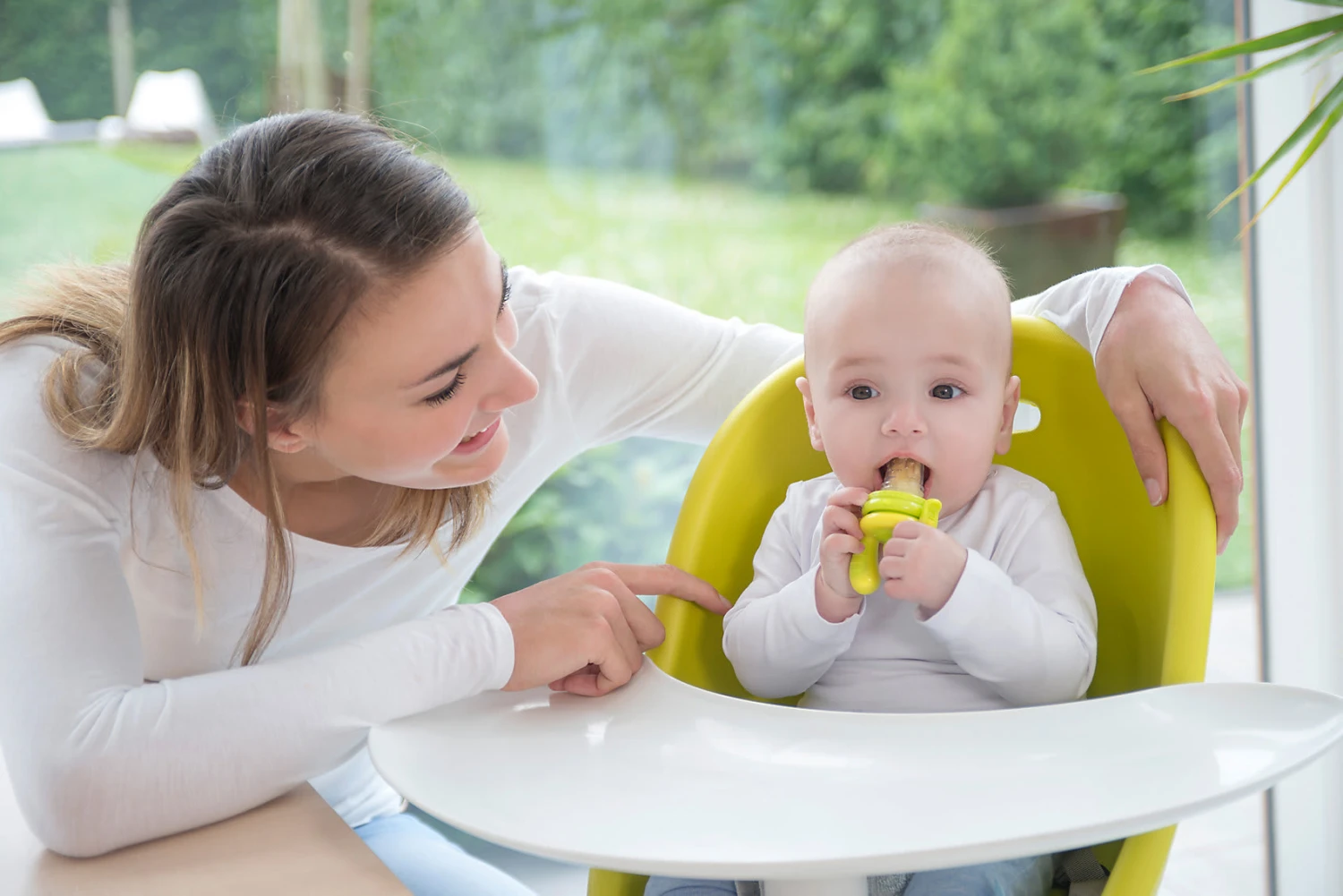 Das Starter-Set „Food Feeder“ hilft Dir, die Kleinen an feste Nahrung heranzuführen. Püriertes Essen wird direkt in den Silikonsauger gefüllt, so dass das Kind sich selbst füttern kann. Das Set kann auch als Zahnungshilfe genutzt werden, wenn es mit kühlenden Inhalten befüllt wird.