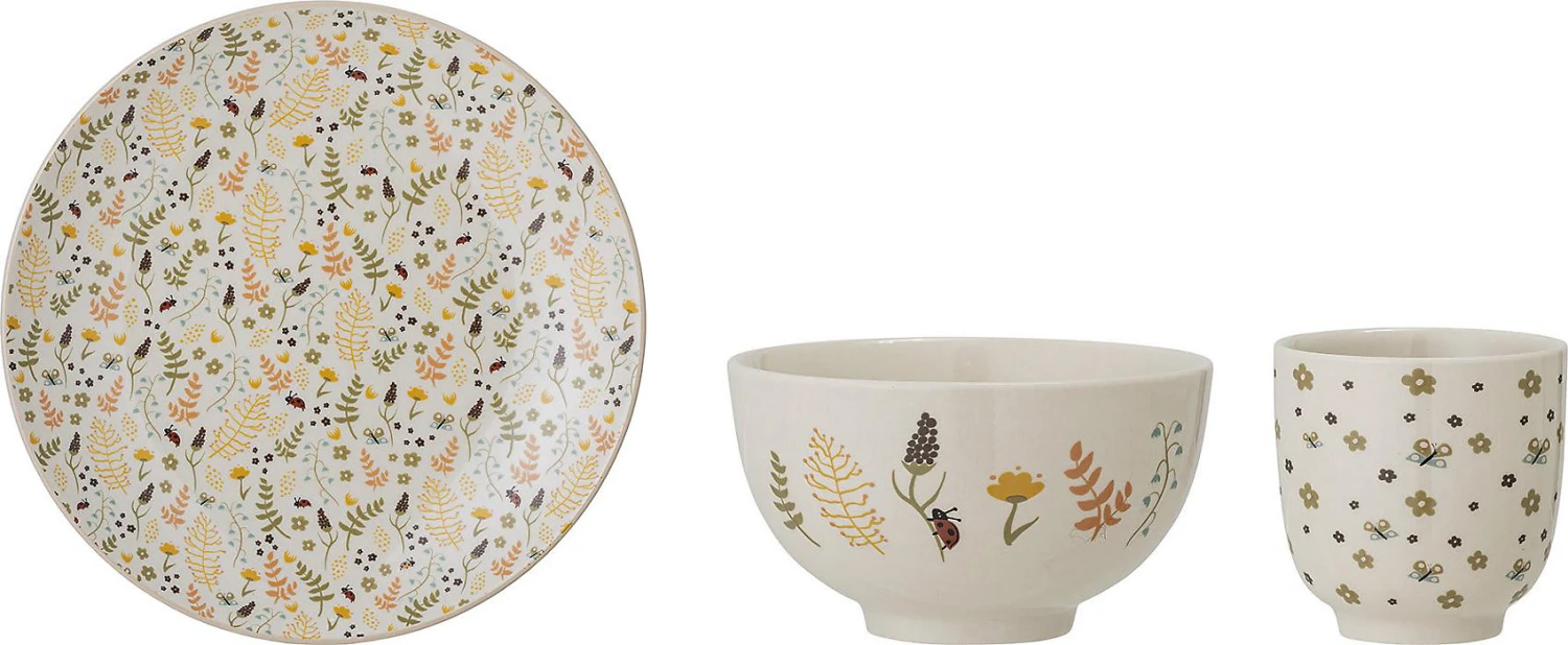 Das wundervolle Kindergeschirrset „Harvest“ der Marke „Bloomingville MINI“ begeistert mit tollen Naturmotiven! In dem Set sind ein Teller, eine Schale und eine Tasse enthalten, sodass Kinder optimal für ein leckeres Frühstück ausgestattet sind. Dieses tolle Geschirrset begleitet Kinder über viele Jahre und sorgt für große Freude!