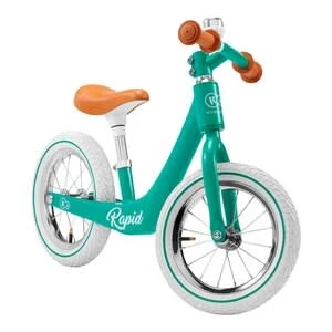 Mit dem Laufrad Rapid von Kinderkraft ist der Nachwuchs flink unterwegs: Das im Retro-Stil gehaltene Design punktet mit einem geringen Gewicht, kugelgelagerten Luftreifen und technischem Know-how. ab 3 Jahren belastbar bis 35 kg 3,75 kg, 85(L) x 39(B) x 53(H) cm, Raddurchmesser 30 cm leichter Rahmen aus Magnesiumlegierung, Vordergabel aus Stahl, höhenverstellbarer Sattel (33 bis 42 cm), begrenzter Lenkeinschlag, rutschhemmende Griffe, kugelgelagerte Luftreifen, Klingel Das Laufrad Rapid von Kinderkraft punktet im stilvollen Retro-Look. Sein Rahmen ist in einem Guss aus einer leichten Magnesiumlegierung gefertigt. So können bereits Kinder ab drei Jahren das nicht einmal vier Kilogramm schwere Bike selbstständig handhaben. Der ergonomisch geformte Sattel kann in der Höhe verstellt werden. So profitieren die Kids stets von einem Rad, das individuell an ihre Maße angepasst ist. Der Lenker liegt ihnen dank rutschhemmender Gummigriffe gut in der Hand. Sein Einschlagwinkel ist begrenzt. Beim Abbiegen fällt es den kleinen Nachwuchs-Bikern so leichter, die Balance zu halten. Für hohen Fahrkomfort auf jedem Untergrund sorgen die kugelgelagerten Luftreifen. Sie sind optimal auf den Nachwuchs abgestimmt und kommen ohne Kleinteile aus. Eine Drehklingel rundet das bis zu 35 Kilogramm belastbare Retro-Rad gelungen ab.