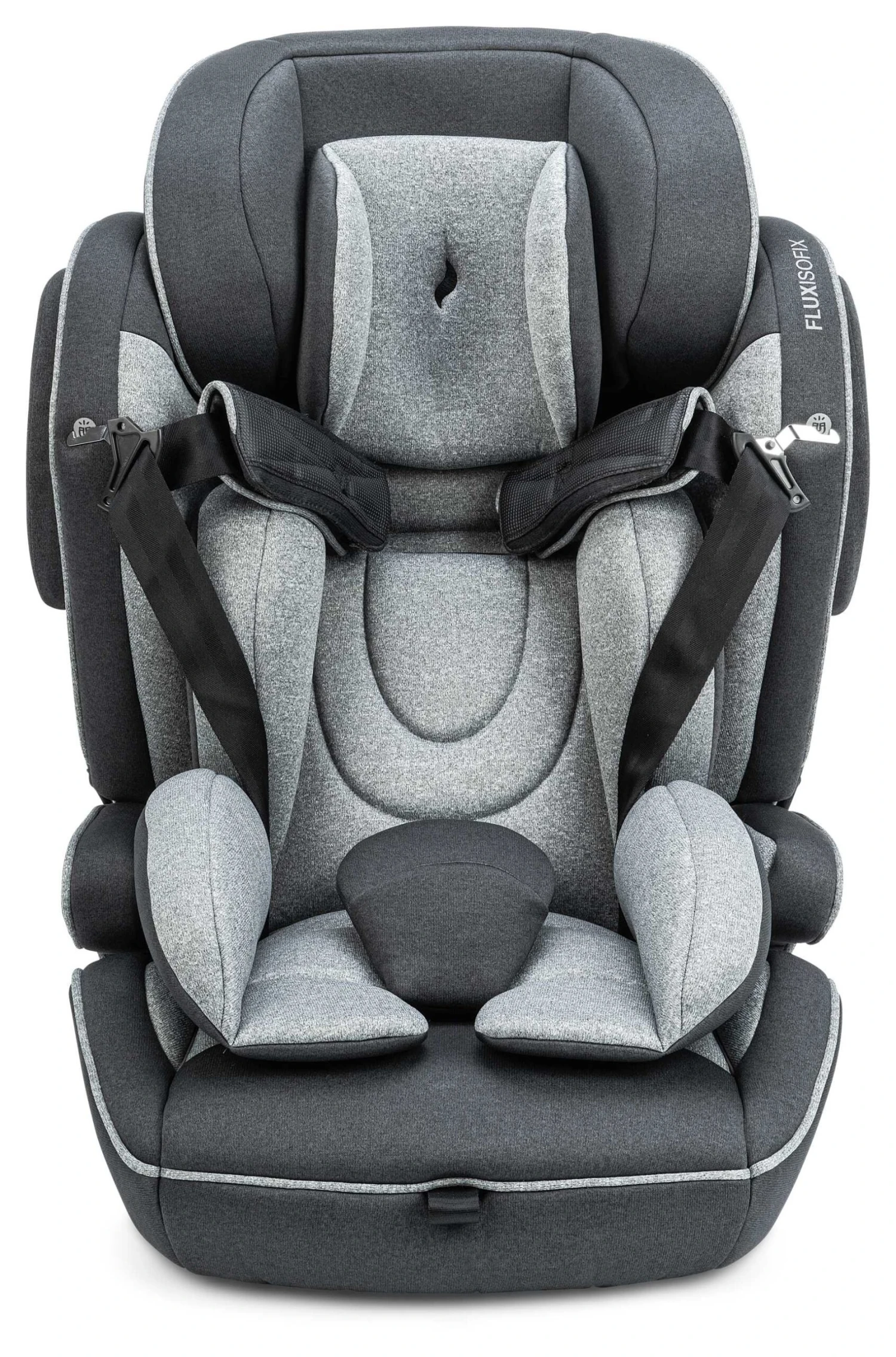 Zeitloses Design, grenzenloser Komfort und höchste Sicherheit – das ist unser Kinderautositz Flux Isofix. Er wurde nach sicherheitstechnischen und orthopädischen Gesichtspunkten entwickelt und sorgt so auch auf längeren Fahrten für die optimale Sitzposition bei den Kleinsten. Um den Kinderkopf bestmöglichst zu schützen, sind die Flanken der Kopfstütze nach vorne gezogen und mit unserem optimierten Seitenaufprallschutz ausgestattet. Das zusätzliche herausnehmbare Kopfpolster sowie die Komforteinlage sorgen dafür, dass der Nachwuchs im Flux Isofix angenehm weich sitzt. Für ein kleines Nickerchen lässt sich der Kinderautositz einfach in die Ruheposition bringen. Dank Hybrid-Lösung kann der Flux Isofix mit den Isofix-Konnektoren in Kombination mit dem Top-Tether oder alternativ mit dem 3-Punkt-Gurt des Fahrzeugs installiert werden. Dafür werden die Isofix-Konnektoren einfach eingefahren.