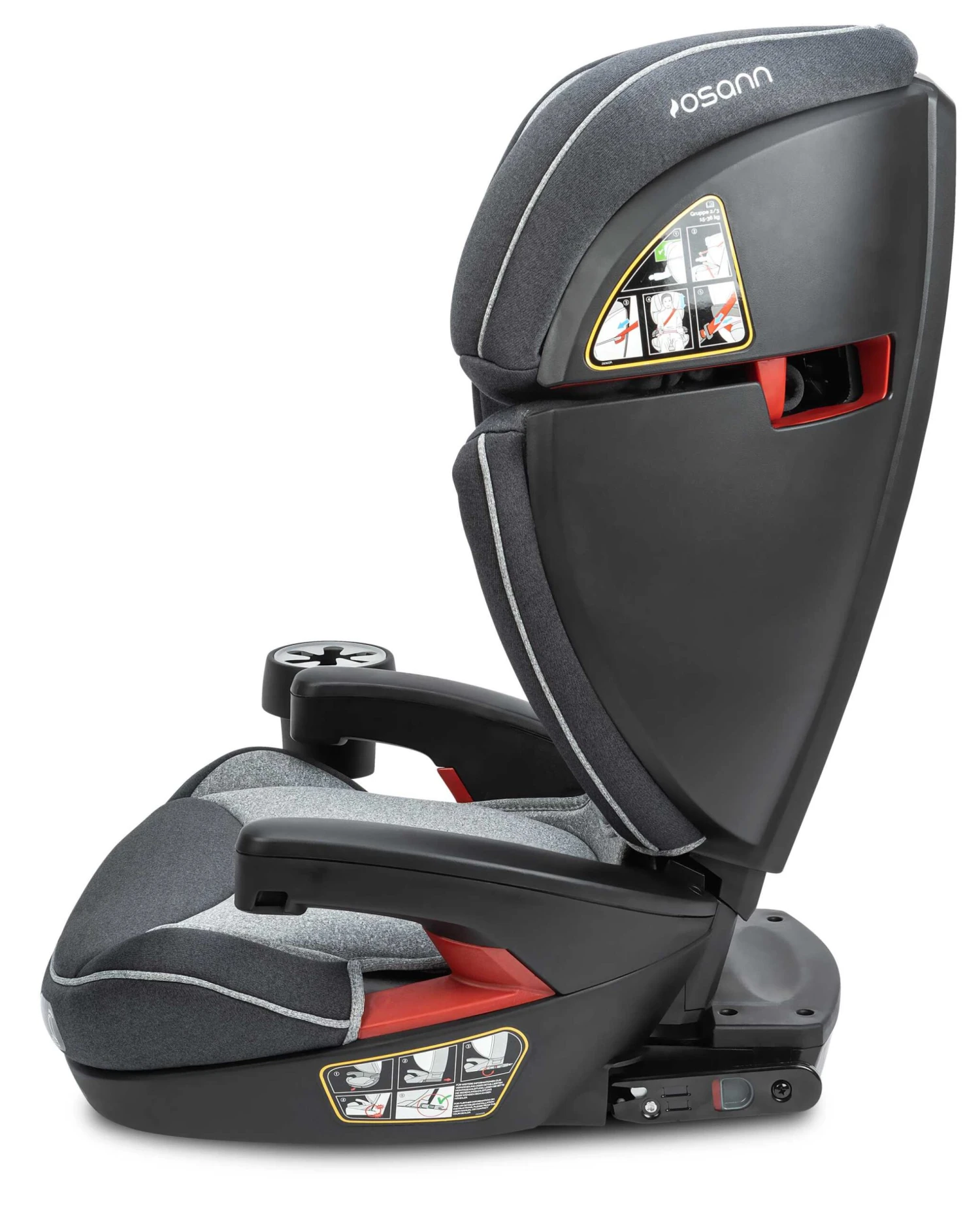 Höchste Sicherheit kombiniert mit optimalem Komfort! Unser Jazzi PS trumpft mit einer echten Neuheit im Osann Portfolio: Die kleinen Passagiere werden von 9 bis 18 Kilogramm durch ein spezielles Fangkörper-System geschützt. Ein großer Vorteil ist dabei die gleichmäßige Verteilung der wirkenden Kräfte bei einem Unfall. Praktischer Nebeneffekt: Zusätzlich hat Mini eine Auflagefläche für Bilderbuch und Co. On top bietet der Kindheitsheld eine siebenfach höhenverstellbare Kopfstütze, eine einstellbare Ruheposition und eine einfache Installation mit Isofix und Drei-Punkt-Gurt ab Gruppe 2. Übrigens: Wenn der Nachwuchs unterwegs mal durstig ist, schafft ein beidseitig montierbarer Becherhalter Abhilfe.