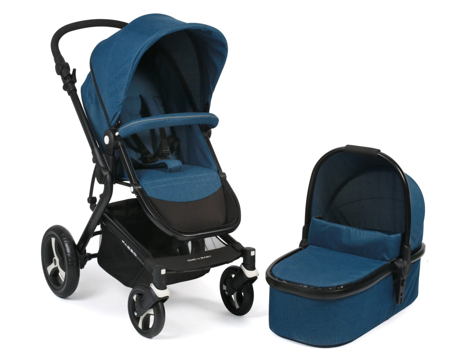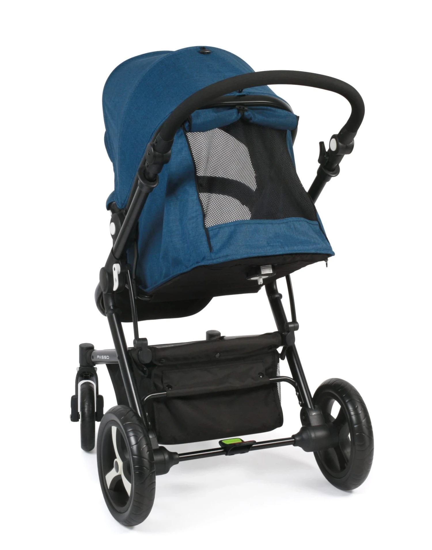 Der Kombi-Kinderwagen PASSO von CHIC 4 BABY überzeugt durch sein modernes Design und vielen verschiedenen Funktionen und praktischen Komforteigenschaften. Durch die 360° schwenk- und feststellbaren Vorderräder ist er extrem wendig. Die vier gefederten Luftkammerräder ermöglichen optimalen Fahrkomfort auch auf unebenen Wegen. Das leichte Aluminium-Gestell kann für den Transport schnell und kompakt zusammengeklappt werden. Das Zusammenklappen geht besonders schnell, da der Aufsatz dazu nicht abgenommen werden muss. Der Sportwagenaufsatz kann in beide Richtungen aufgesetzt werden, so dass Sie Ihr Kind je nach Wunsch in Blick- oder in Fahrtrichtung setzen können. Die Rückenlehne ist stufenlos bis in die Liegeposition verstellbar und die Fußstütze lässt sich ebenfalls mehrfach verstellen, sodass das Kind auch im Sportwagen angenehm schlummern kann. Der Sportwagen hat ein extra großes Verdeck, das Ihr Kind vor Sonne und Wind schützt. Der stabile Wannenaufsatz hat ein umklappbares Verdeck und kann ab Geburt benutzt werden. Für die Sicherheit sorgen ein 5-Punkt-Sicherheitsgurt mit Schulterpolstern und gepolstertem Gurtschloss sowie der leicht abnehmbare Sicherheitsbügel. Der weich gepolsterte Schiebegriff ist von 94 – 106 cm höhenverstellbar und kann somit auch von unterschiedlich großen Eltern komfortabel benutzt werden. Ein Maxi-Cosi Adapter ist im Lieferumfang enthalten. Aufbaumaß: 85 x 62 x 110 cm