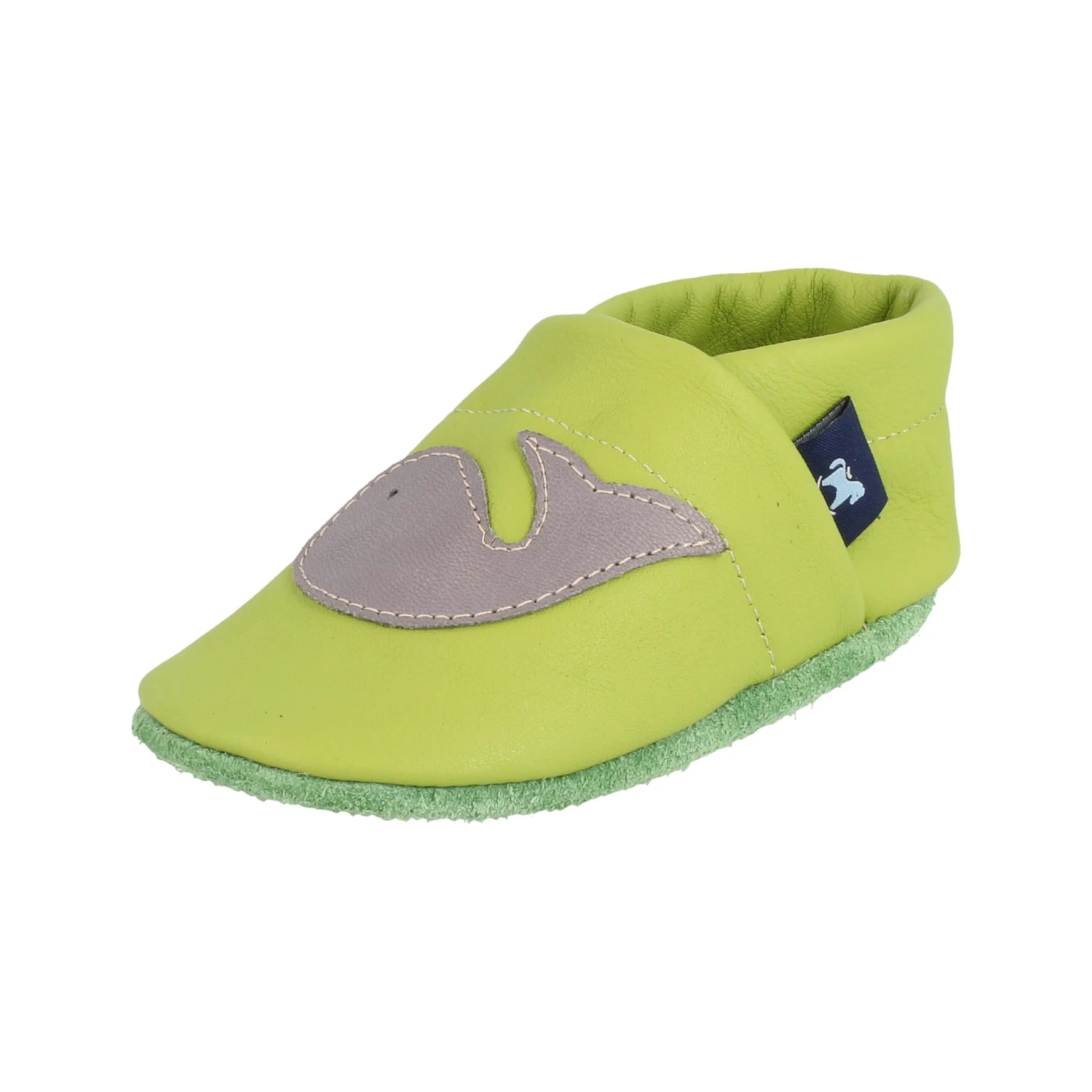 Krabbelschuhe / Lederpuschen Mit Wal In Apfelgrün / Grau