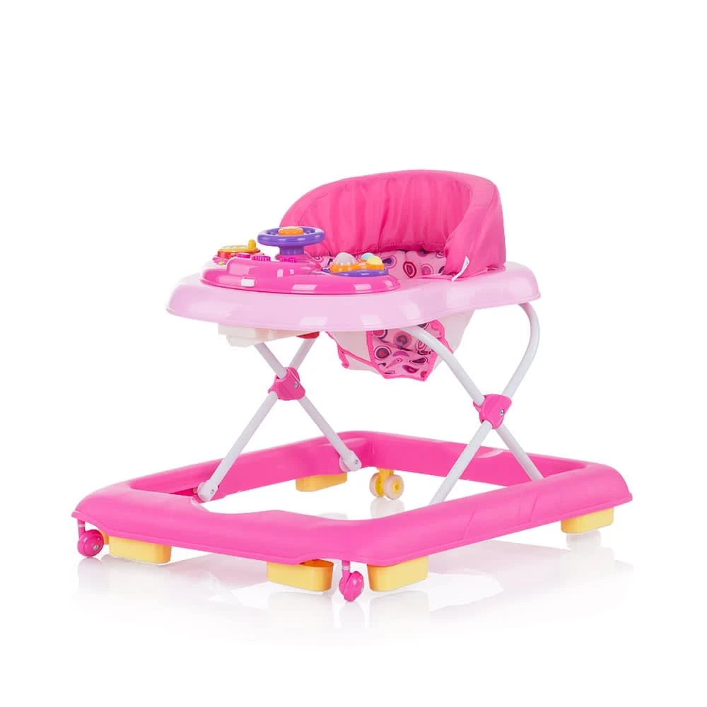 Die Lauflernhilfe Carrera von Chipolino ist für Kinder ab ungefähr 6 Monaten bis maximal 12 Kilogramm geeignet. Ihr Kind sollte schon selbstständig sitzen können. Die Höhe ist dreifach verstellbar und passt sich somit der Größe Ihres Kindes an. Für die Sicherheit an Treppen oder umkippen sorgen die sechs Stopper an den Rädern. Das Gehfrei verfügt über eine breite Basis für mehr Stabilität. Gegen Langeweile sorgt das Spielcenter mit verschiedenen Tasten und Musikfunktion. Hierfür werden 2 AA 1,5 V Batterien benötigt, die nicht im Lieferumfang enthalten sind. Der Sitz ist weich gepolstert und bietet dank seiner hohen Rückenlehne optimalen Komfort für Ihr Baby.