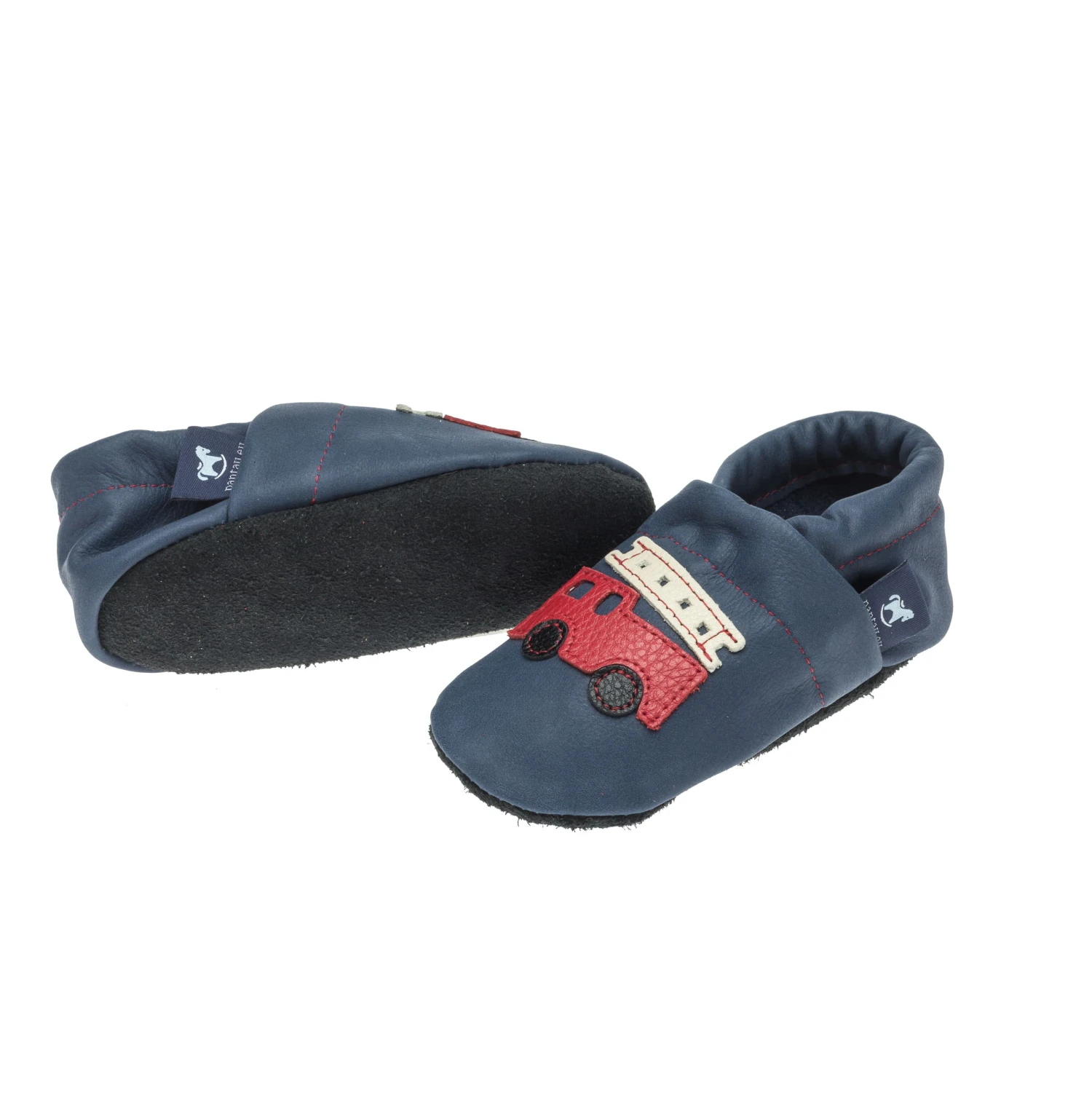 Lauflernschuhe / Lederpuschen Mit Feuerwehr In Blau / Rot