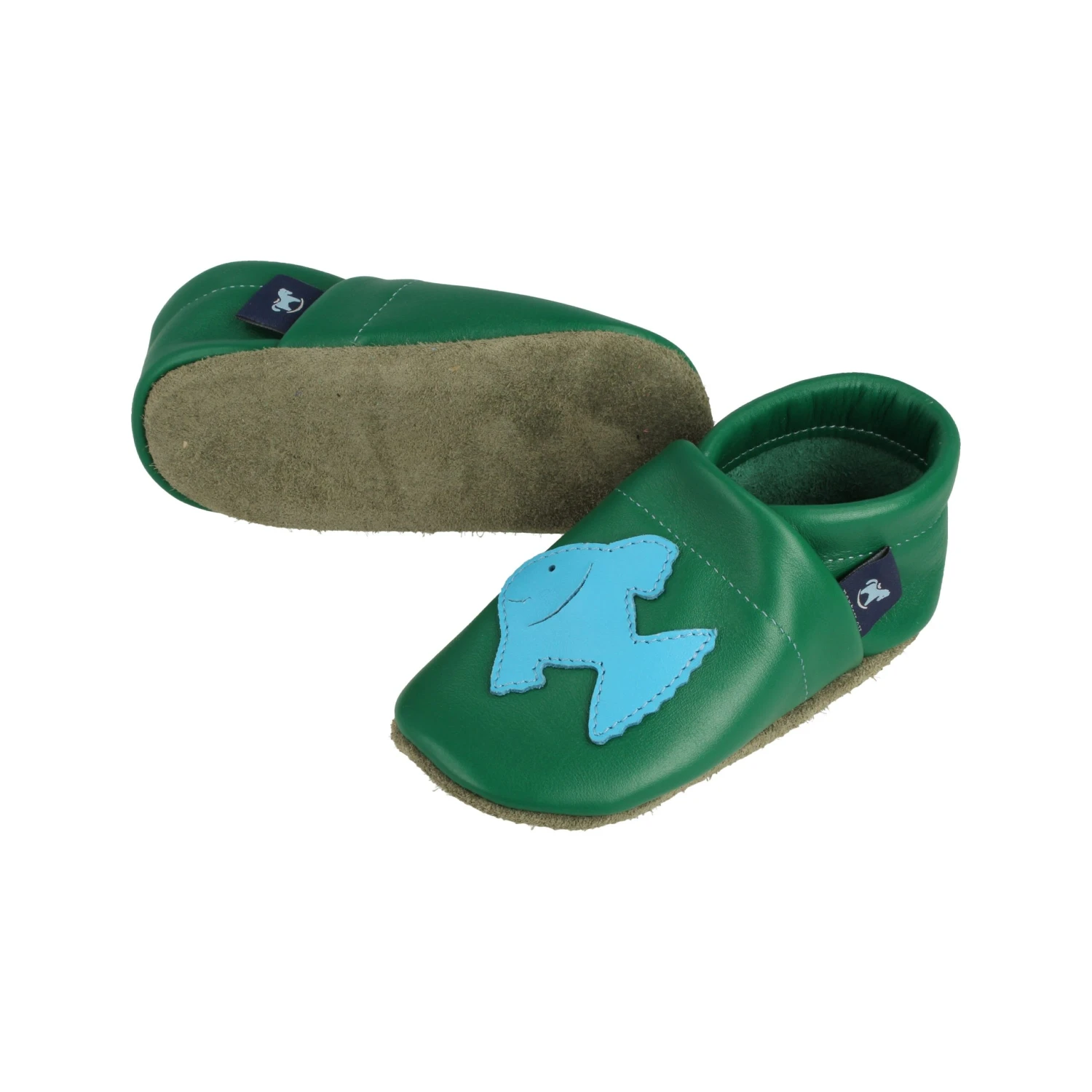 Lauflernschuhe / Lederpuschen Mit Fisch In Grün / Hellblau