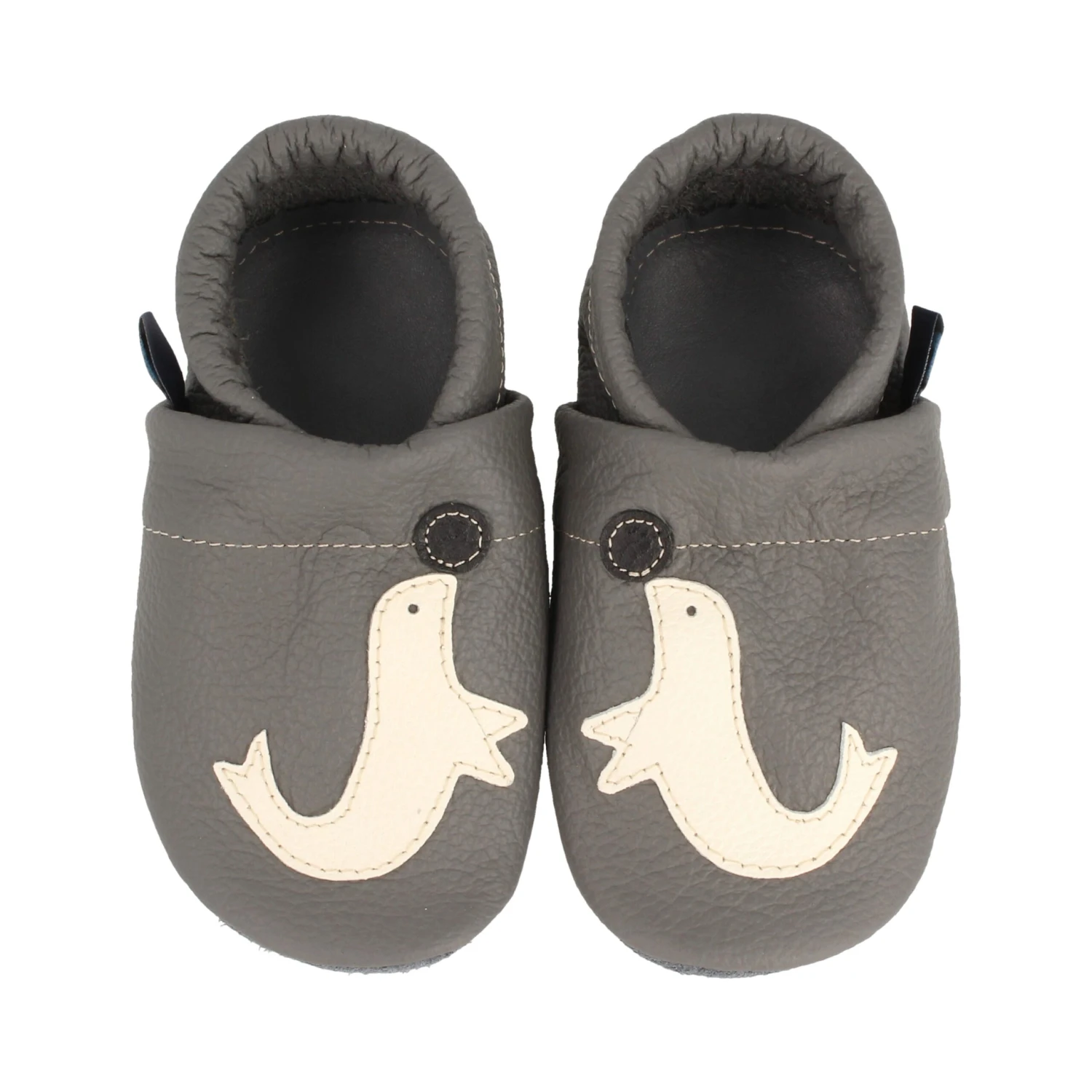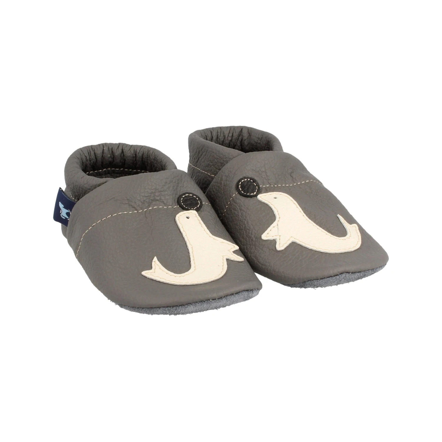 Lauflernschuhe / Lederpuschen Mit Robbe In Grau / Beige