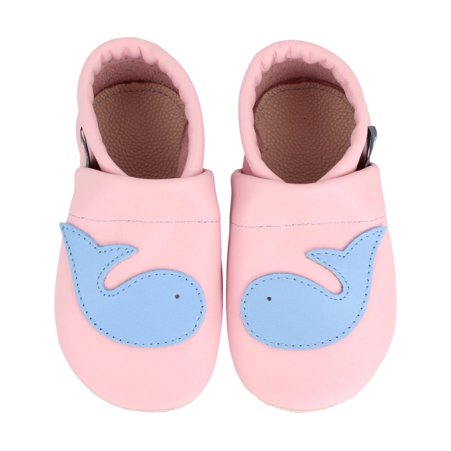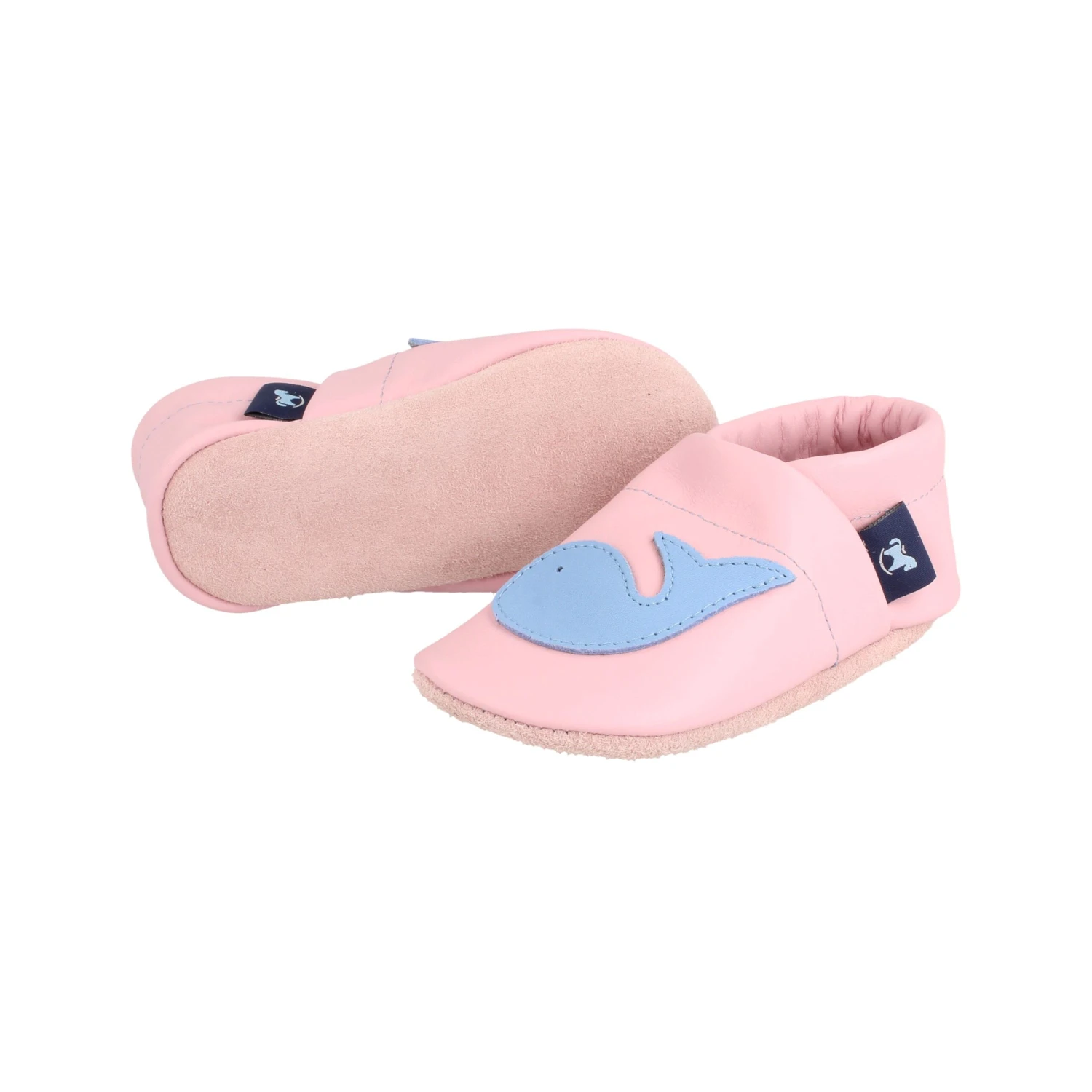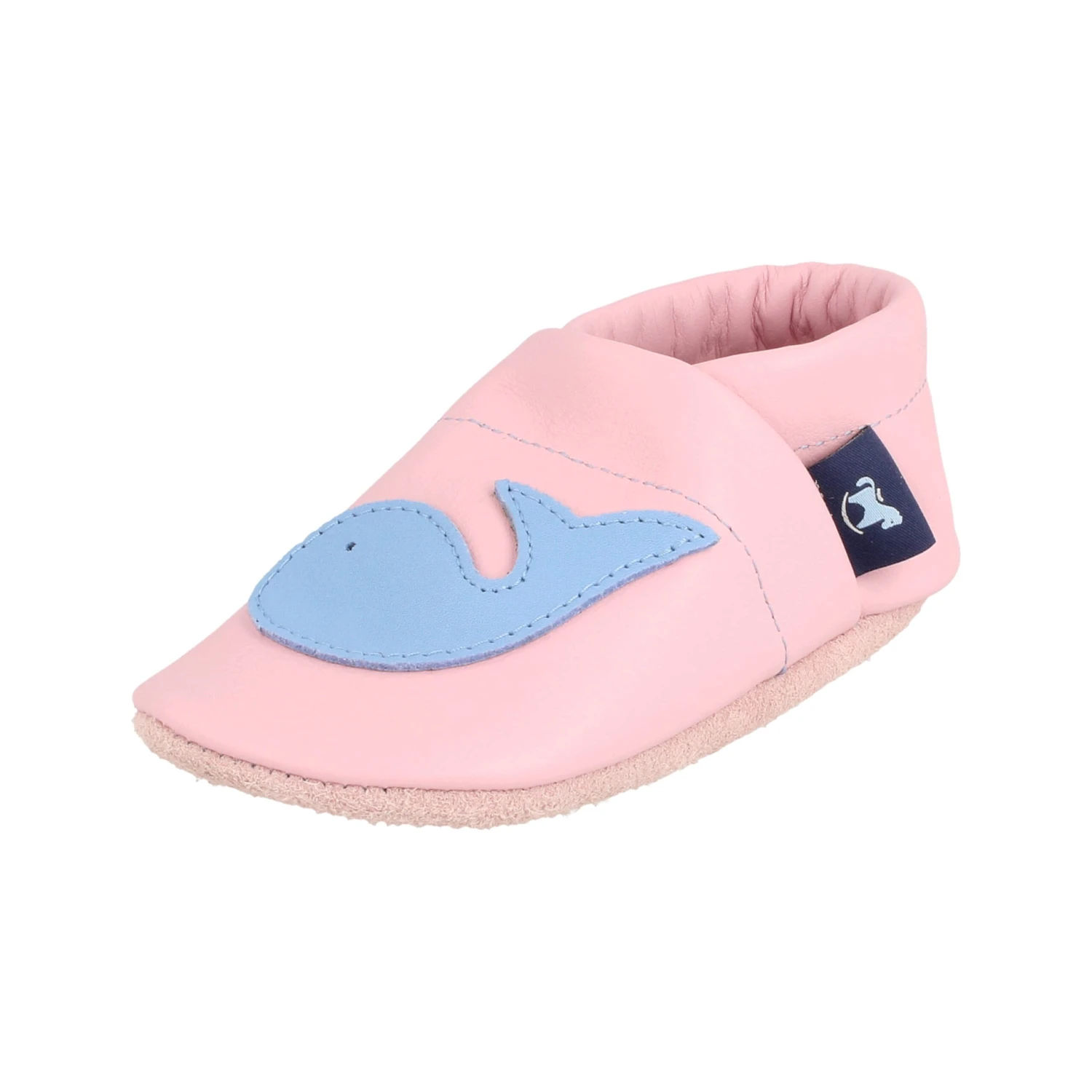 Lauflernschuhe / Lederpuschen Mit Wal In Rosa / Hellblau