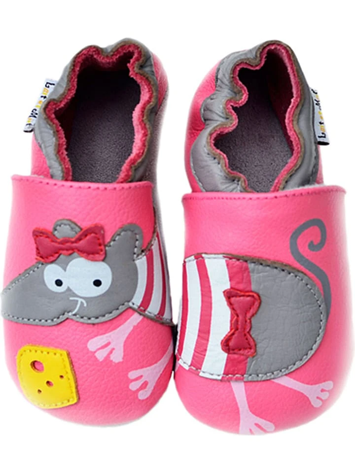 Leder-Krabbelschuhe „Maus“ In Pink/ Grau