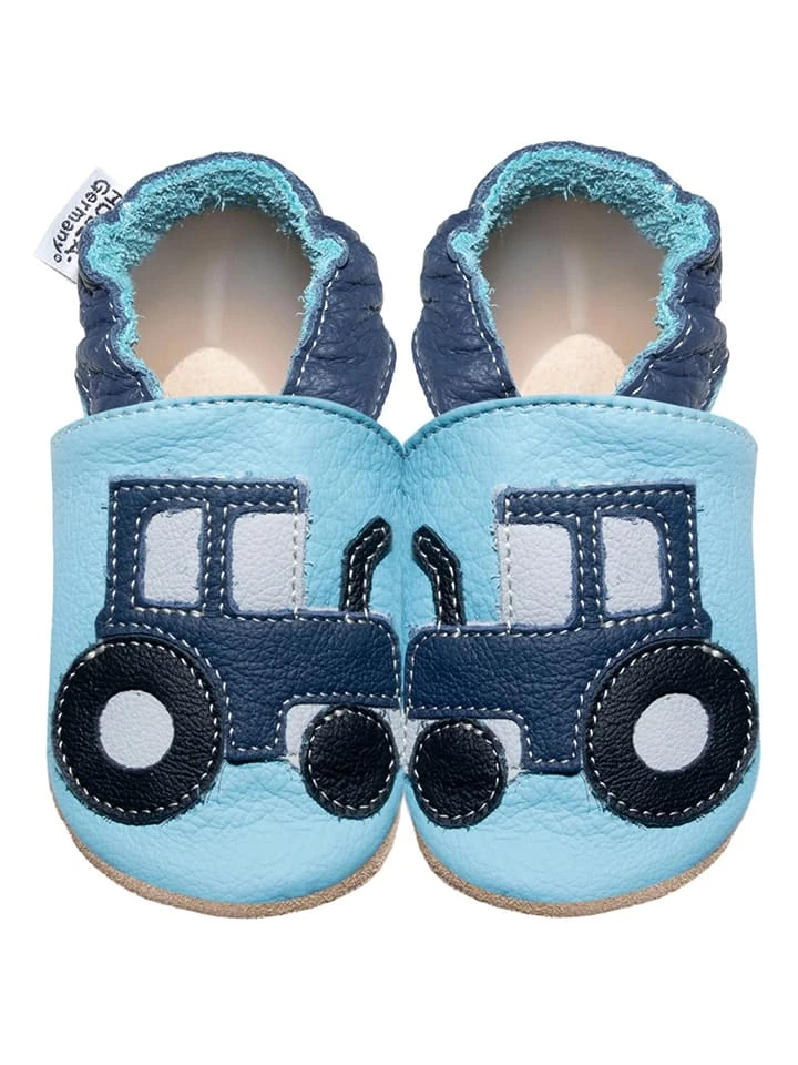 Leder-Krabbelschuhe „Traktor“ In Hellblau