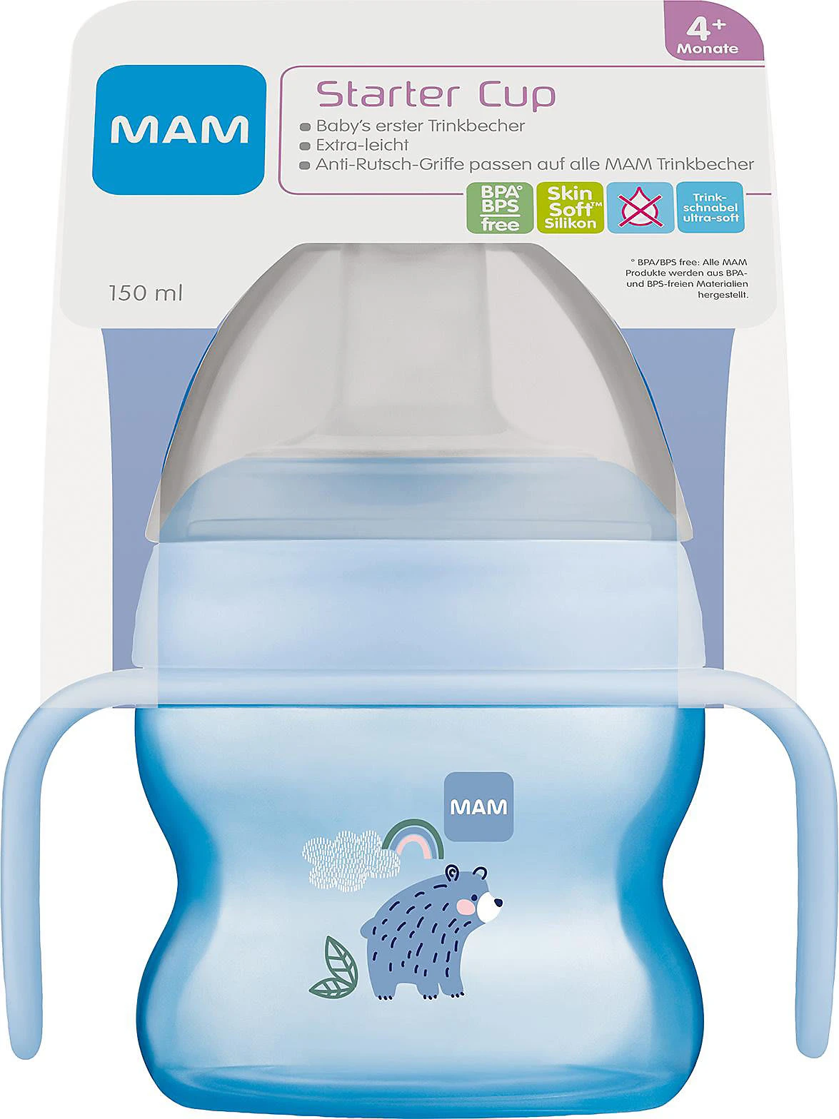 Der MAM Starter Cup ist ein leichter Trinklernbecher für erste eigenständige Trinkversuche. Selbstständiges Trinken bedeutet für Babys einen wichtigen Schritt in der Entwicklung. Der MAM Starter Cup mit extra-weichem, tropffreien Silikon-Trinkschnabel ist ideal für die ersten, eigenständigen Trinkversuche aus einem Becher geeignet. Der am Rand des Bechers angebrachte Trinkschnabel bereitet Kinder auf das Trinken aus dem Glas vor, ganz ohne Kleckern. Die taillierte Form und die ergonomischen, rutschsicheren Griffe erleichtern es Babys und Kleinkindern den Becher gut zu halten. Durch den Verschlussdeckel kann der Trinkbecher verschlossen und damit auch leicht unterwegs transportiert werden. Der MAM Starter Cup kann in der Spülmaschine gereinigt werden und ist für Kinder ab 4 Monaten geeignet. Alle Einzelteile des MAM Starter Cups können mit anderen MAM Trinkbechern kombiniert werden.