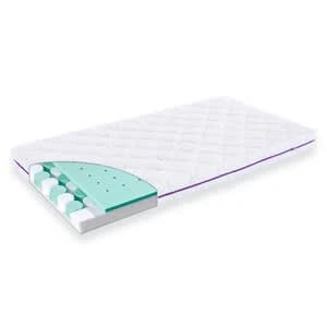 Mit der hochwertigen Matratze Traumplanet mit den Maßen 70 x 140 Zentimeter von Träumeland sind Kinderbettchen optimal ausgestattet. Angenehmer Liegekomfort unterstützt den erholsamen Schlaf von Babys und Kleinkindern. Comfort Matratze Babyseite bis 12 kg, danach Kleinkindseite trittfester Rand, frei stehende Comfort-Pads 140(L) x 70(B) x 11(H) cm aus atmungsaktivem, punktelastischem Kaltschaum, Bezug aus Multi-Funktionsstoff, versteppt mit Wash-Vlies Der Matratzenkern besteht aus frei stehenden Comfort-Pads. Diese sorgen für eine ideale Belüftung der Matratze. Der Multi-Funktionsstoff Sleep Safety schützt vor Nässe. Falls einmal ein kleines Malheur passiert, dringt nichts davon in den Matratzenkern ein. Der Bezug lässt sich abnehmen und waschen. Sicherheitstritt-Ränder geben dem Kleinkind Halt, wenn es am Gitter im Bett steht.