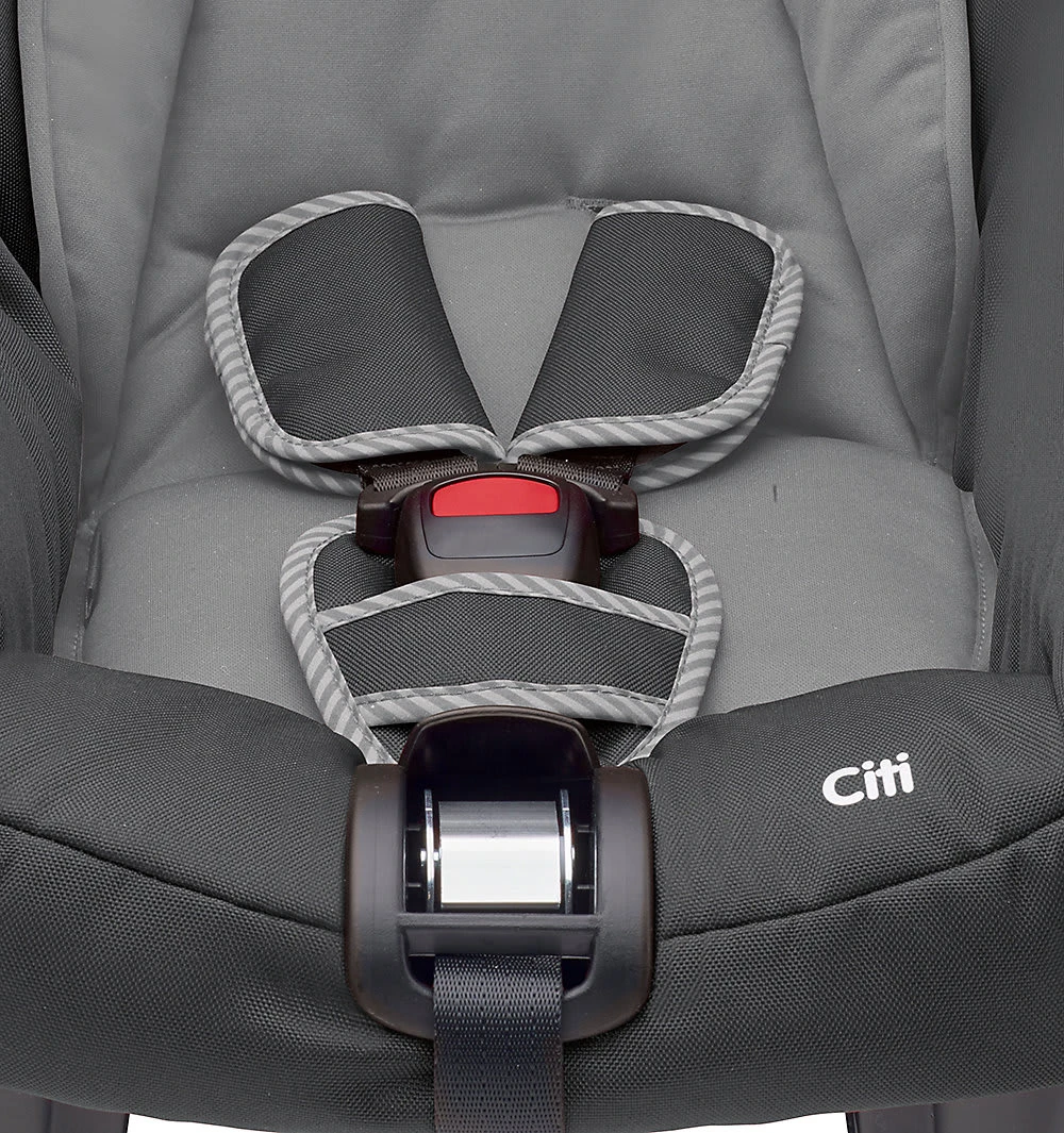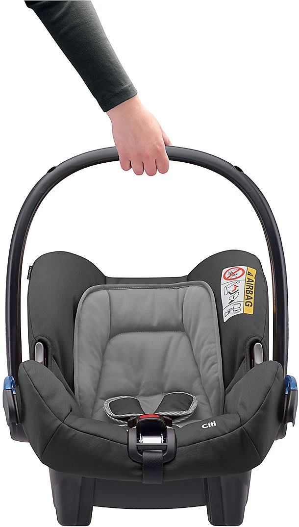 Mit der Maxi-Cosi Babyschale „Citi“ mit verbessertem Seitenaufprallschutz (SPS) fährt Ihr Kind von Anfang an in der ersten Klasse. Das Leichtgewicht mit nur knapp 3 Kilogramm wurde speziell für Babys von 0 bis 12 Monaten und einem Maximalgewicht von 13 Kilogramm entworfen. Die Sitzfläche ist besonders großzügig gestaltet und bequem gepolstert. Durch den ergonomischen Tragegriff liegt er auch beim Transport gut in der Hand. Der Tragebügel wird per Druckknopf verstellt. Die Gurte können mit einer Hand bequem angezogen werden. Sollte auf der Fahrt mal etwas auf die Schale kleckern, lässt sich der Bezug leicht zur Reinigung abnehmen, ohne dass das Gurtsystem dabei demontiert werden muss.