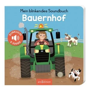 Für kleine Bauernhof-Fans: Das blinkende Soundbuch „Bauernhof“ von ArsEdition lädt Kinder ab zwölf Monaten zum Entdecken ein. ab 12 Monaten geeignet Pappbuch strahlendes Blinklicht und 6 Sounds mit An- und Ausschalter 12 Seiten 3x Knopfzellen LR 1130 im Lieferumfang enthalten deutschsprachig Weißt Du, wie der Traktor klingt? Das Sound- und Lichtbuch bietet ersten Spielspaß rund um das Thema Bauernhof. Die in den Seiten integrierten Soundchips lassen sich durch leichten Druck aktivieren und lösen atmosphärische Sounds und das leuchtende Blinklicht aus. Praktisch: Das Buch verfügt über einen An- und Ausschalter auf der Rückseite.