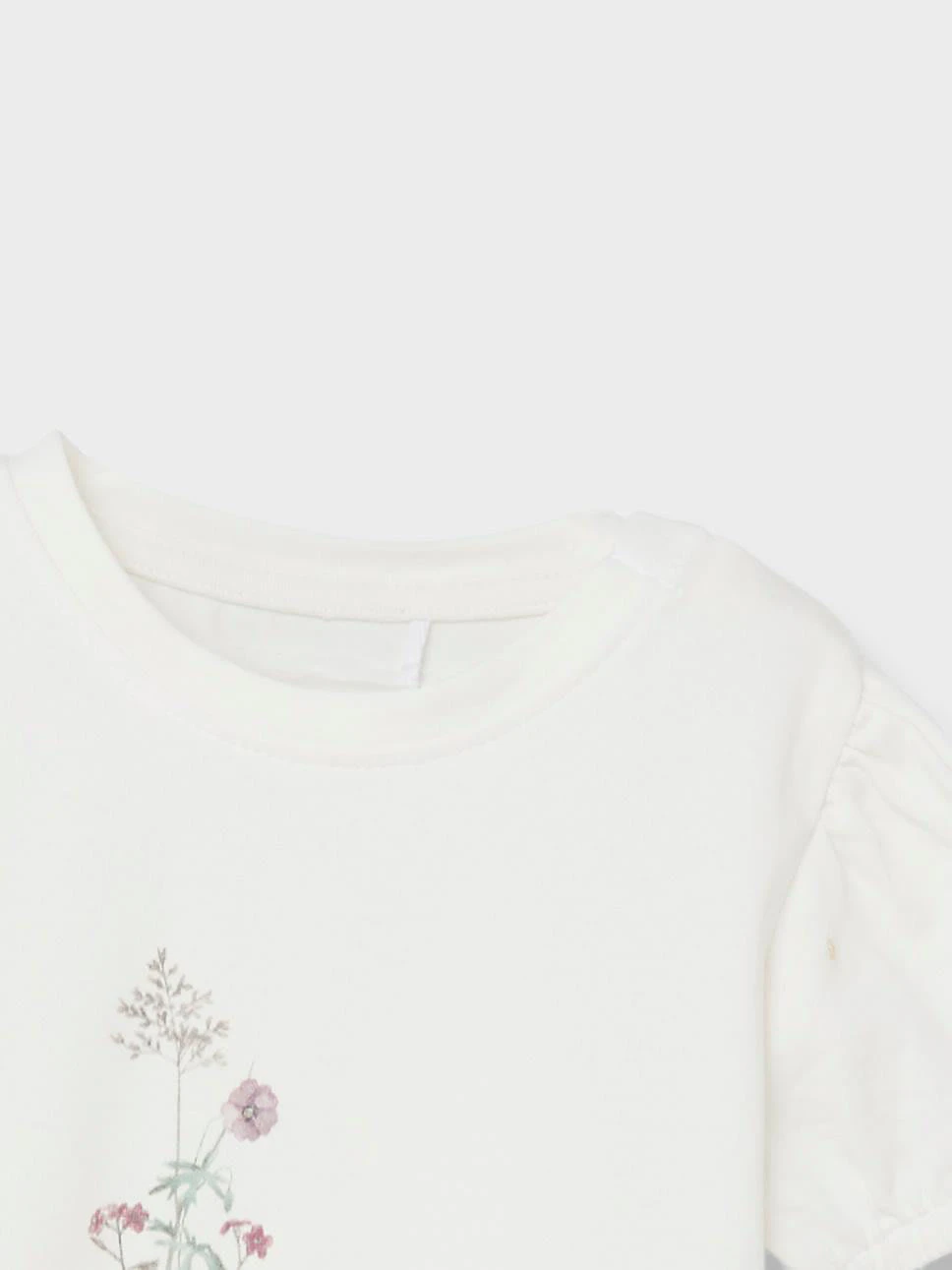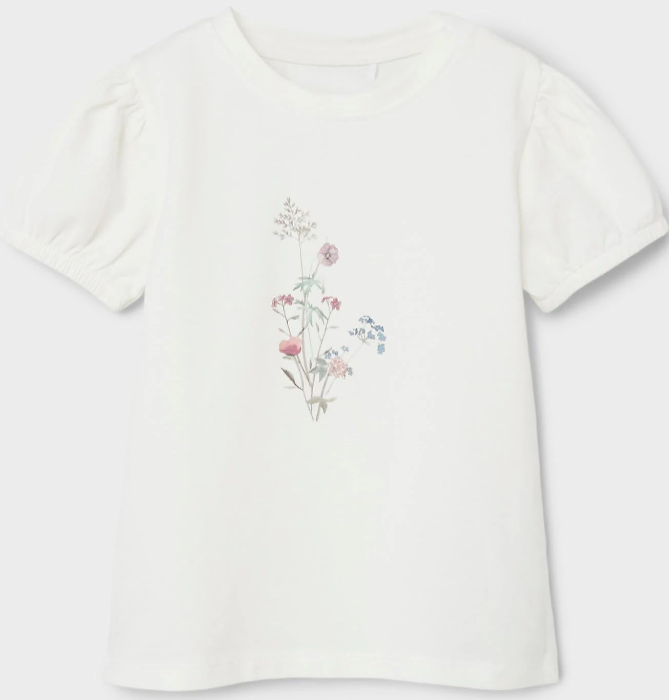 Blumen in Pastellfarben zieren das T-Shirt von Name It. Das niedliche Design wird durch Puffärmel stilecht abgerundet. Der weiche Jersey sorgt ebenso für gute Laune. T-Shirt von Name It Blumen-Print Puffärmel klassischer Rundhalsausschnitt Jersey elastischer Baumwoll-Mix mit Bio-Baumwolle Das T-Shirt von Name It setzt auf ein verspieltes Design. Dafür sorgen die Blumen in milden Farben vorn und die mädchenhaften Puffärmel. Das Shirt erweist sich als idaler Begleiter für Shorts, Leggings oder Jeans. Das Oberteil besticht auch in puncto Komfort auf ganzer Linie: Der Jersey ist aus einer soften, elastischen Baumwoll-Mischung gefertigt. Die Qualität trägt sich angenehm und bietet Deinem Mini die heiß begehrte Bewegungsfreiheit.