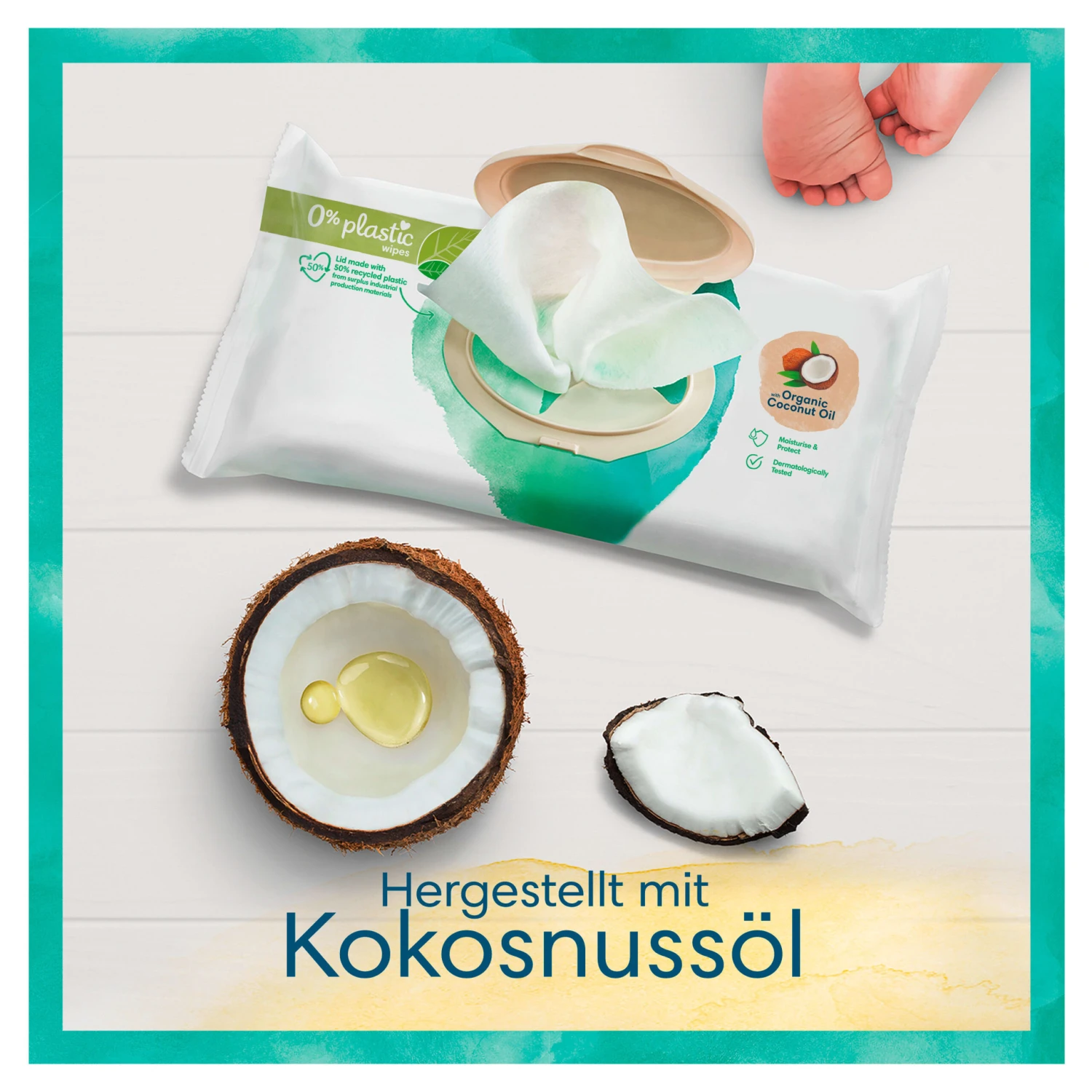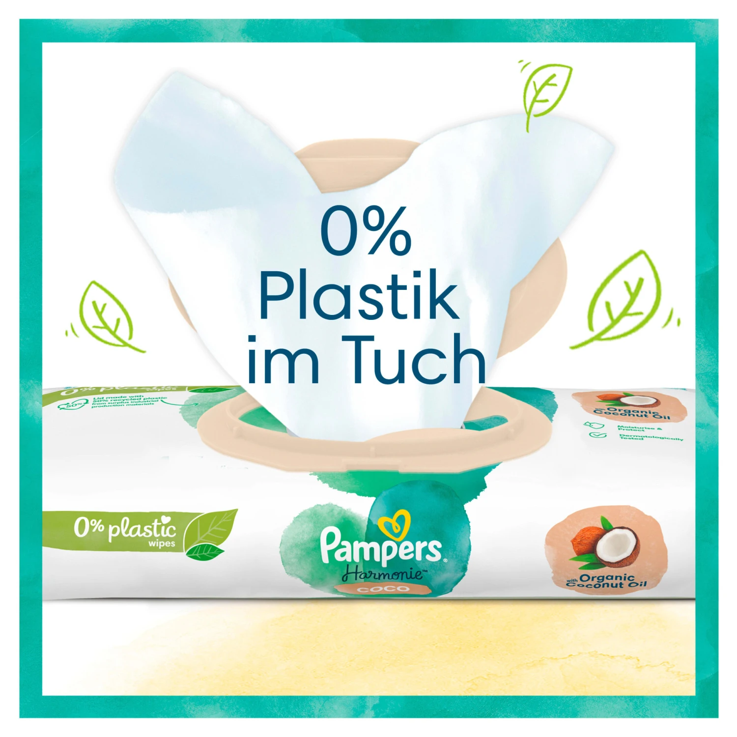 Die Haut deines Babys ist sehr empfindlich und verdient eine sanfte Reinigung. Pampers Harmonie Coco Feuchttücher enthalten Bio-Kokosnussöl, um der empfindlichen Haut deines Babys Feuchtigkeit zu spenden und sie zu schützen. Sie enthalten 0% Plastik im Tuch und sind aus 100% pflanzenbasierten Fasern hergestellt. Die Enzyme in Urin und Stuhl verändern den pH-Wert der Haut und erhöhen das Risiko von Reizungen und Windelausschlag. Die einzigartige dermatologisch getestete Formel von Pampers Harmonie Coco schützt den natürlichen pH-Wert der Haut besser als Baumwolle und Wasser und reduziert so das Risiko von Hautreizungen. Da Pampers Harmonie Coco für die empfindliche Haut von Neugeborenen entwickelt wurden, sind sie ohne Alkohol und Farbstoffe hergestellt.
