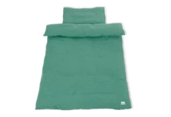 Babybettwäsche-Set aus Musselin für Kinderbetten, grün, 2-teilig, aus 100% Baumwolle, mit Hotelverschluss, Bettbezug 100 x 135 cm, Kopfkissenbezug 40 x 60 cm, bis 60 Grad waschbar, schonende Trocknung. Wie alle Textilien von Pinolino ist auch die Wendebettwäsche schadstofffrei. So können sich die Kleinen bedenkenlos in das süße Bettset einkuscheln. Die Bettwäsche entspricht dem STANDARD 100 by OEKO-TEX®. Der Stoff aus 100 % Baumwolle ist besonders saugfähig und atmungsaktiv. Er kann bei 60 Grad gewaschen werden. Die schöne grüne Farbe ist modern gestaltet und passt hervorragend in fast jedes Kinderzimmer; nicht heiß bügeln (Höchsttemperatur 110 Grad). Durch die spezielle Verschlussform können Decken und Kissen schneller bezogen werden als zum Beispiel bei Bezügen mit Knöpfen oder einem Reißverschluss. Auch bei der Wäsche bieten Bezüge mit Hotelverschluss eine leichtere Handhabung .Pinolino erfüllt seit 1997 Kinderträume und vertreibt Kindermöbel, Accessoires und Spielwaren. Die Babytextilien des deutschen Unternehmens sorgen für Geborgenheit, sind schadstofffrei und entsprechen dem STANDARD 100 by OEKO-TEX®.