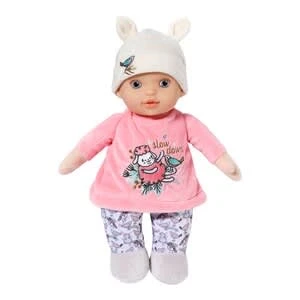 Die süße Sweetie ist die erste Puppenfreundin für Babys ab Geburt. In ihrem Inneren versteckt sich eine Rassel, deren sanfter Klang die Kleinen beruhigt. Puppe Baby Annabell Sweetie for babies 30 cm von Zapf Creation mit Rassel im Inneren softer Puppenkörper aus Kunststoff, Textil, waschbar ab Geburt geeignet Der Körper der Schmusepuppe ist weich gestopft, so dass sich kleine Schlummermäuse prima an sie anschmiegen können. Das rosa Oberteil ist mit verspielten Stickereien verziert. Der slow-down-Schriftzug erinnert auch die Eltern daran, einfach mal langsam zu machen. Der liebevoll modellierte Kopf der Stoffpuppe ist aus softem Vinyl und mit freundlich schauenden Augen bemalt. Er wird von einer hellgelben Mütze mit putzigen Öhrchen bedeckt. Wenn die 30 Zentimeter große Puppe mal aus dem Wagen gefallen ist, kann sie problemlos bei 30 Grad Celsius gewaschen werden.