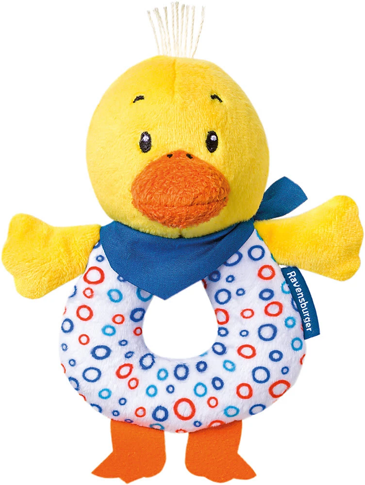 Der Ravensburger Entchen-Greifling in klassischer Ringform eignet sich ideal zum Greifen und Schütteln. Unterschiedliche Materialien und ein sanftes Glöckchengeräusch bieten spannende Abwechslung und fördern die Sinne des Babys auf vielfältige Weise.