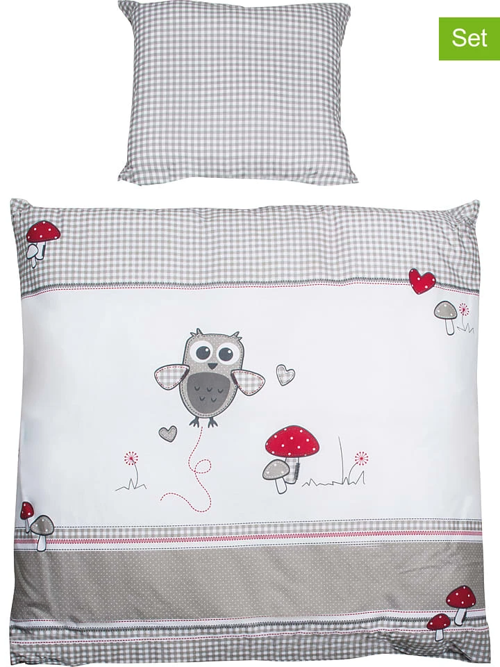 Roba Wiegen-Bettwäsche-Set „Adam & Eule“ In Weiß/ Grau
