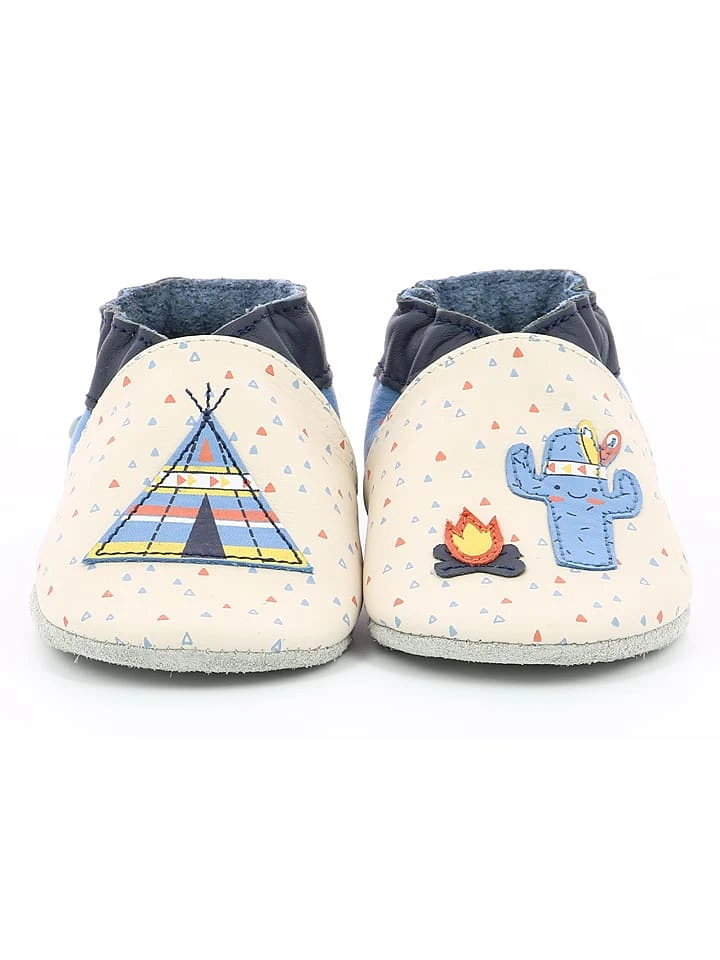 ROBEEZ Leder-Krabbelschuhe „Tipi“ In Hellblau/ Creme