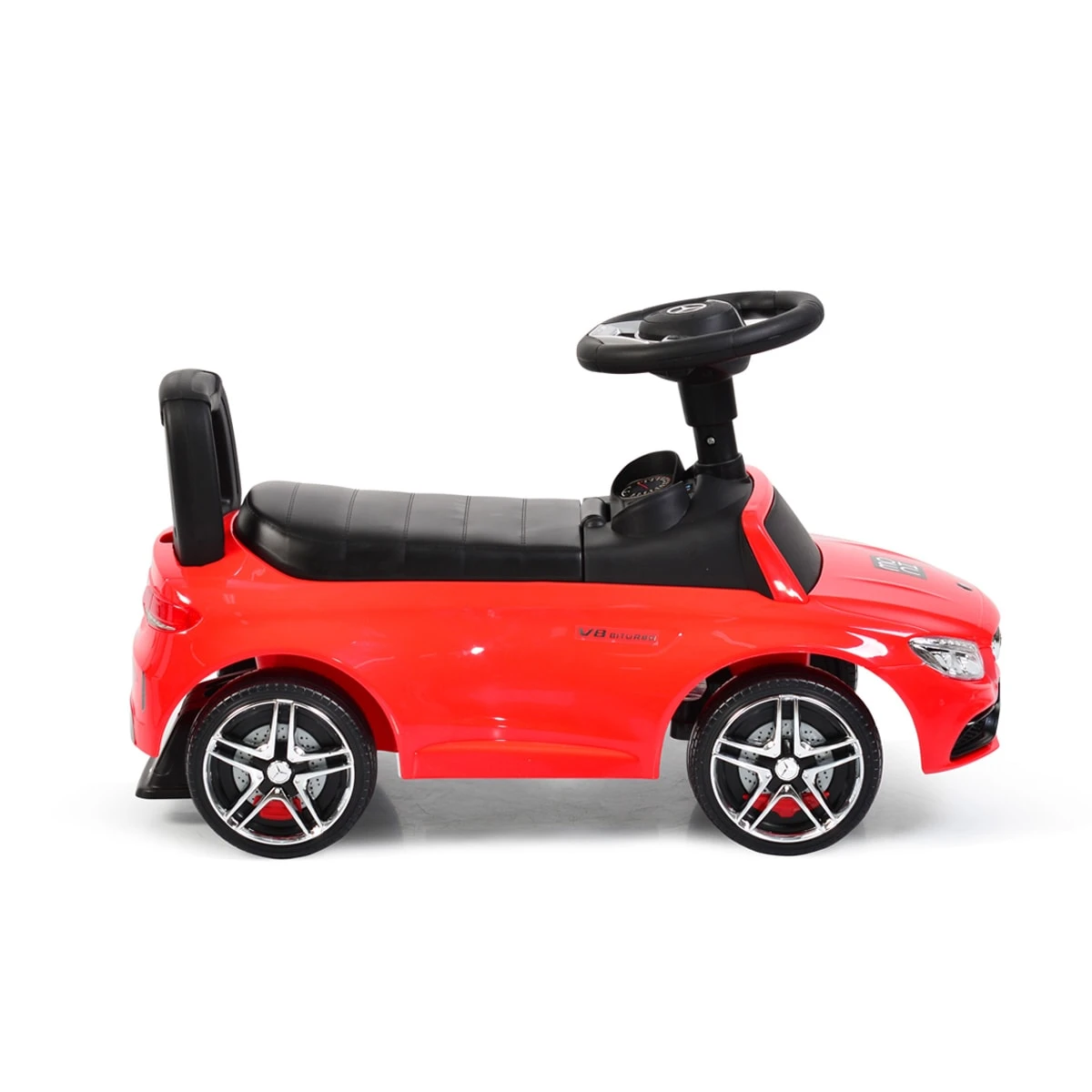 Das Rutschauto Mercedes C63 Coupe 638 aus dem Hause Moni für kleine Raser. Es ist geeignet für Kinder ab 12 Monaten bis ungefähr 36 Monaten oder maximal 25 Kilogramm. Der bequeme Sitz bietet optimalen Fahrkomfort für Ihr Kind. An der Rückenlehne kann sich Ihr kleiner Liebling festhalten und das Auto durch die Wohnung schieben. Am Lenkrad befinden sich verschiedene Tasten, die auf Druck verschiedene Melodien spielen. Zum Aktivieren der Musikfunktionen benötigen Sie zwei AA 1,5V Batterien, die nicht im Lieferumfang enthalten sind. Mit dem Rutschauto trainiert Ihr Kind das Gleichgewicht sowie die motorischen Fähigkeiten. Das Kinderauto ist lizenziert von der Daimler AG.