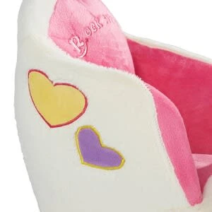 Das süße, weiche Schaukeltier-Pony von solini bringt Babys und Kleinkinder in Bewegung und trainiert ihren Gleichgewichtssinn. ab 12 Monate bis 3 Jahre bis 30 kg belastbar 50,5(H) x 61(L) x 34,5(B) cm mit Handpuppe Soundfunktion, Kufen und Griffe aus Holz Batterien werden benötigt, 2x AA Kinder lieben es zu schaukeln, es entspricht ihrem natürlichen Bewegungsdrang. Durch leichte Berührung des Ohres können die kleinen Reiter Geräusche erzeugen, das Pony wiehert oder galoppiert. So werden viele Sinne angesprochen. Mit seinem niedlichen Design ist das Schaukeltier ein dekoratives Element in jedem Kinderzimmer.